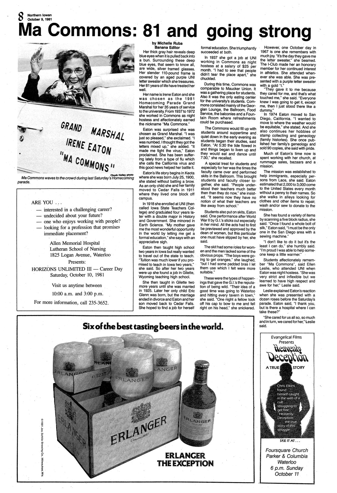 Ma Commons: 81 and going strong Former ISTC student and Commons hostess Irene "Ma Commons" Eaton was made grand marshal of this year's Homecoming parade; photo.