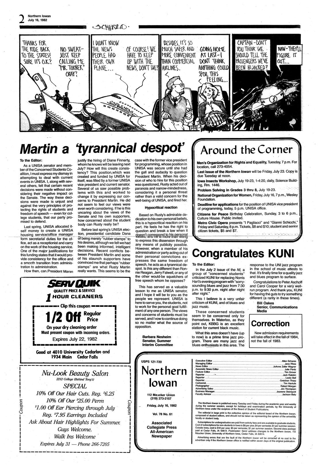 | Martin a 'tyrannical despot' | Student criticizes Rusty Martin. |