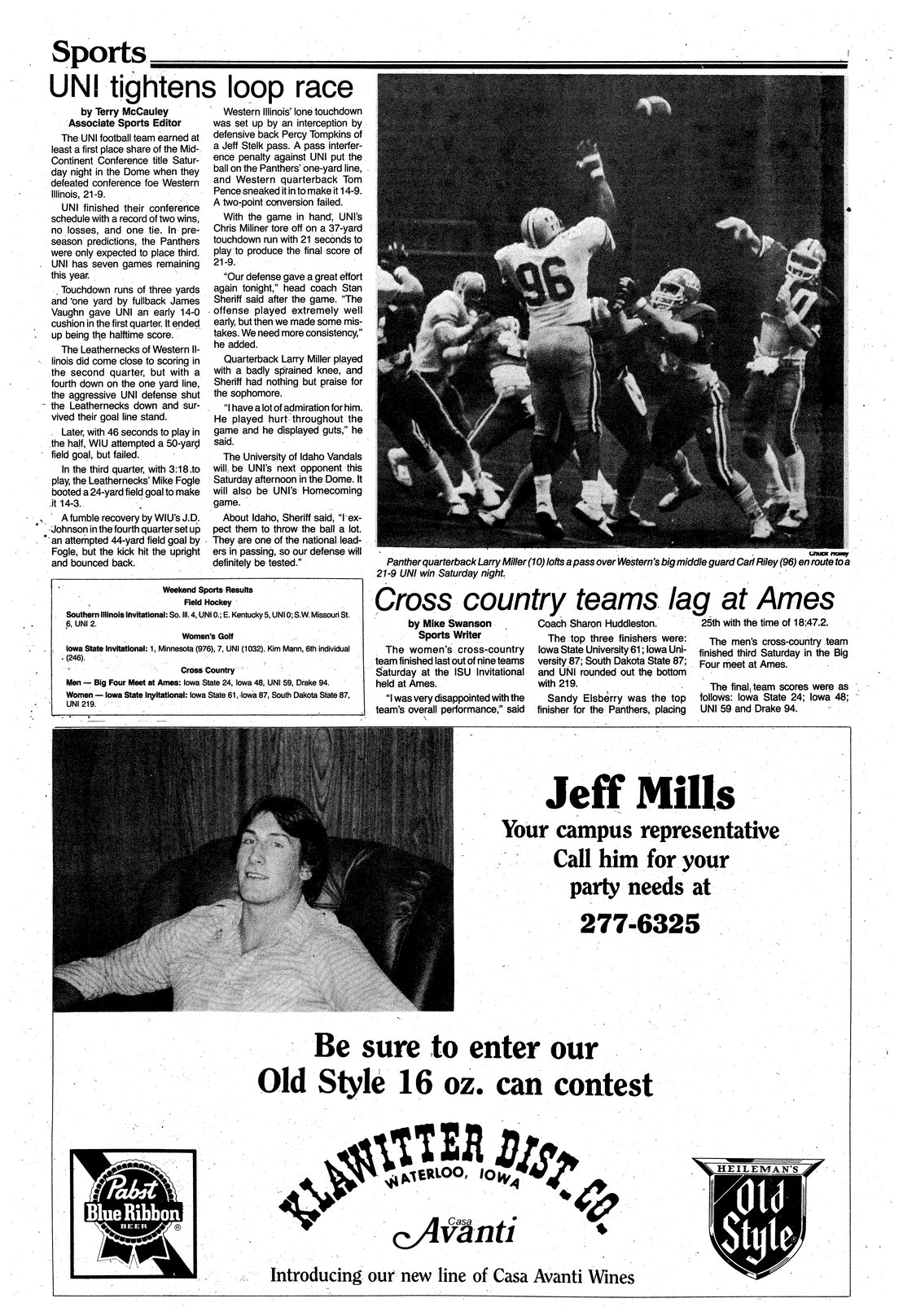 UNI tightens loop race UNI defeated Western Illinois, 21-9, in the UNI-Dome on Saturday; photo.