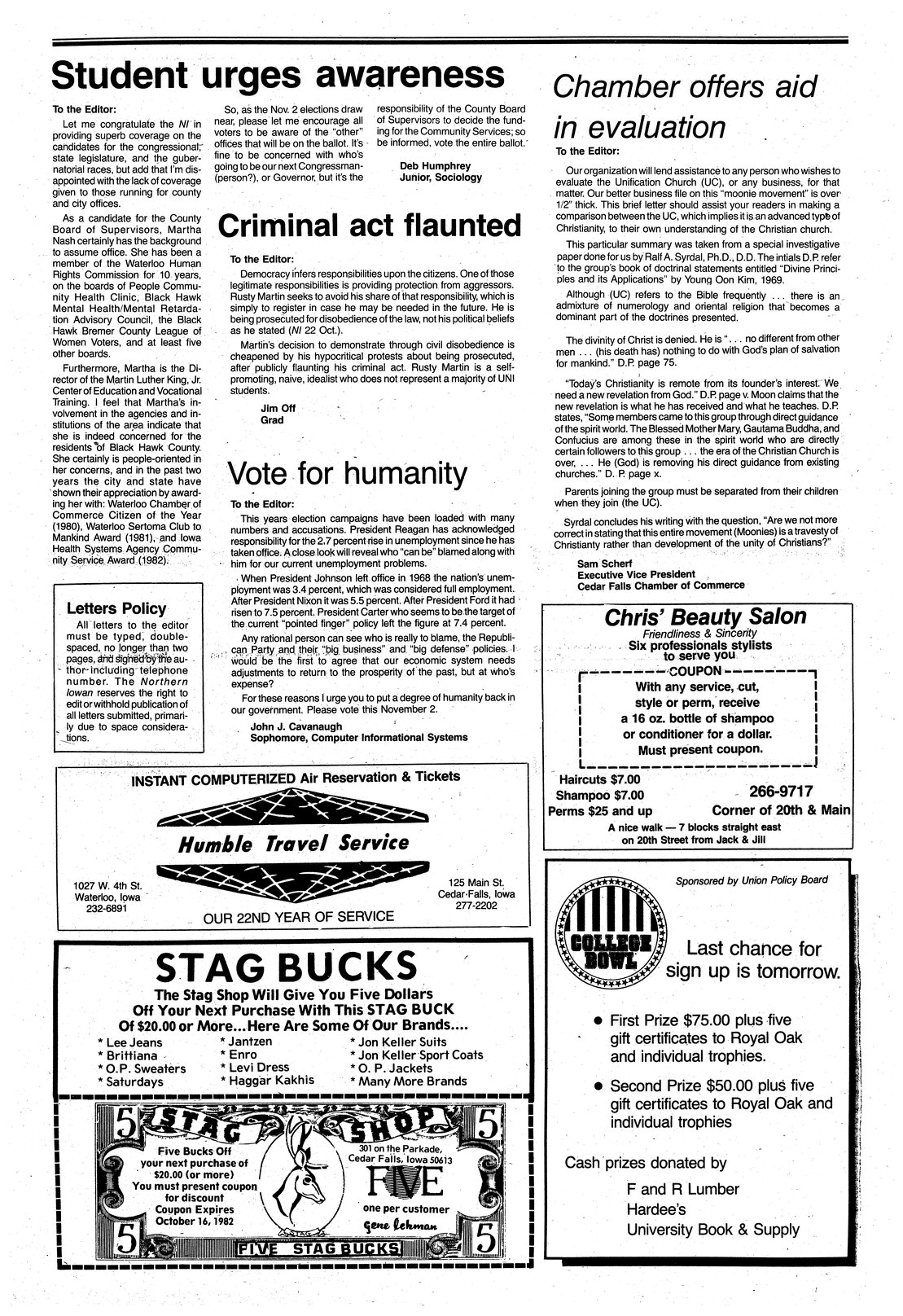 | Chamber offers aid in evaluation | Cedar Falls Chamber of Commerce offers assistance to anyone evaluating the Unification Church. |