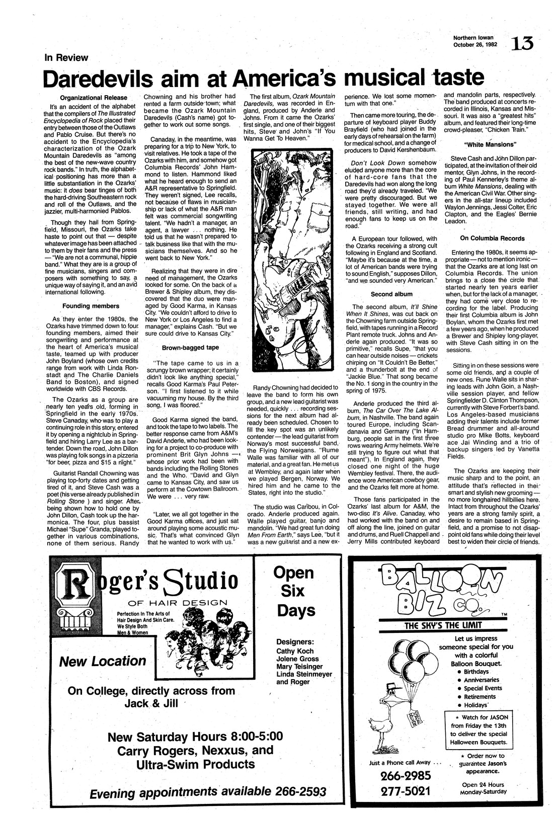 | Daredevils aim at America's musical taste; in review | Review of the Ozark Mountain Daredevils. |