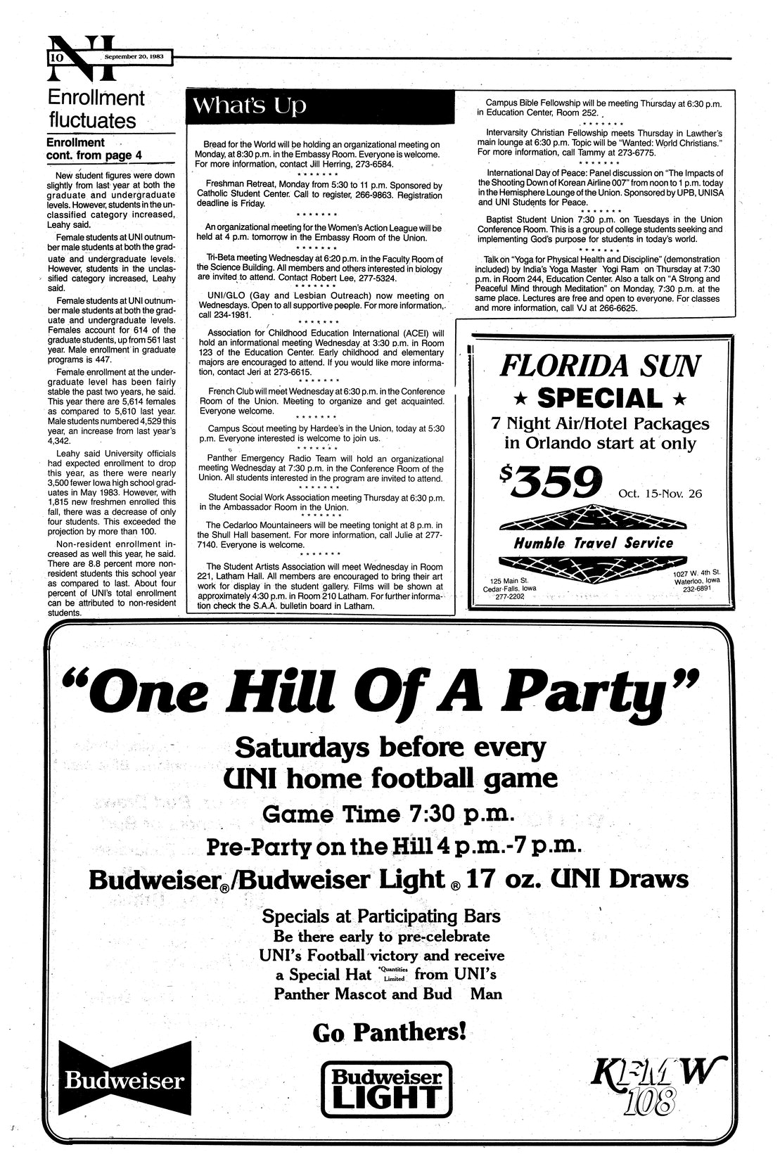 | What's Up | Meetings and activities; Bread for the World; Tri-Beta; Panther Emergency Radio Team. |