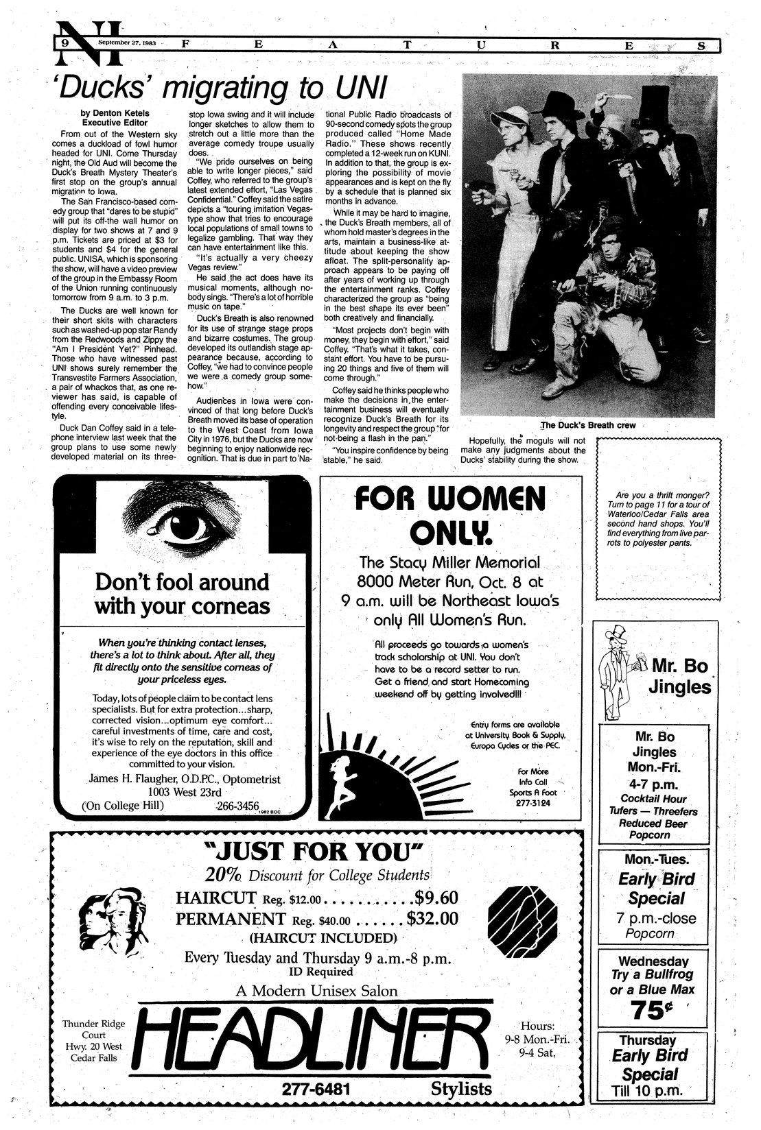 | 'Ducks' migrating to UNI | Duck's Breath Mystery Theater will perform; photo. |