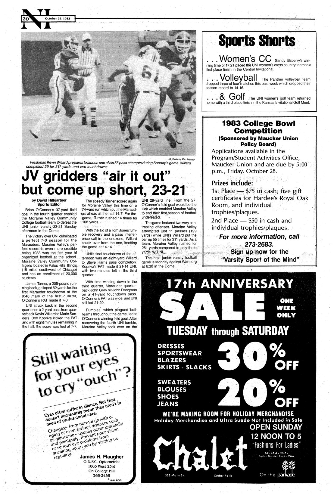 | JV gridders "air it out" but come up short, 23-21 | Moraine Valley Community College defeats the UNI junior varsity football team; photo. |