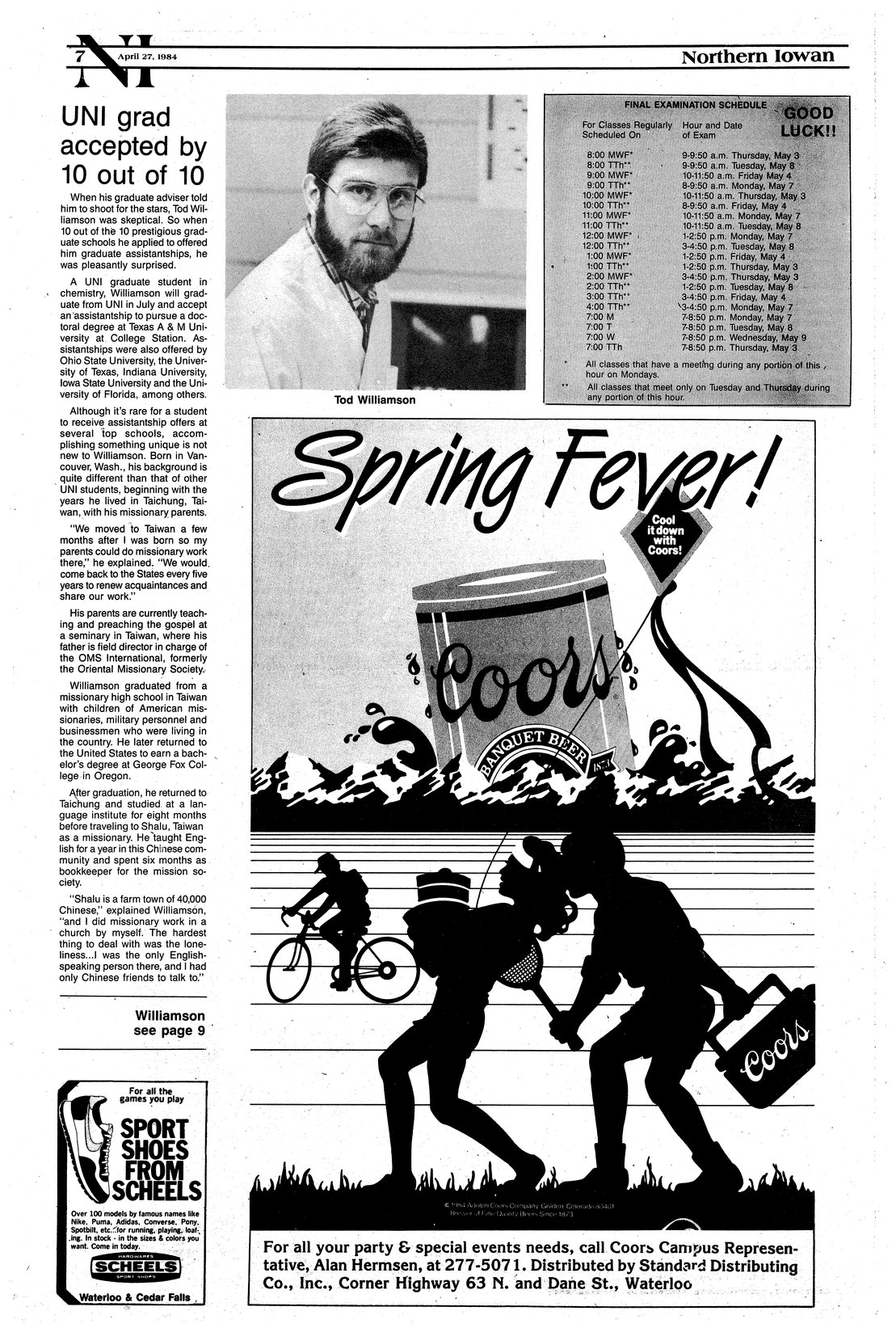 UNI grad accepted by 10 out of 10 Profile of Tod Williamson; photo.