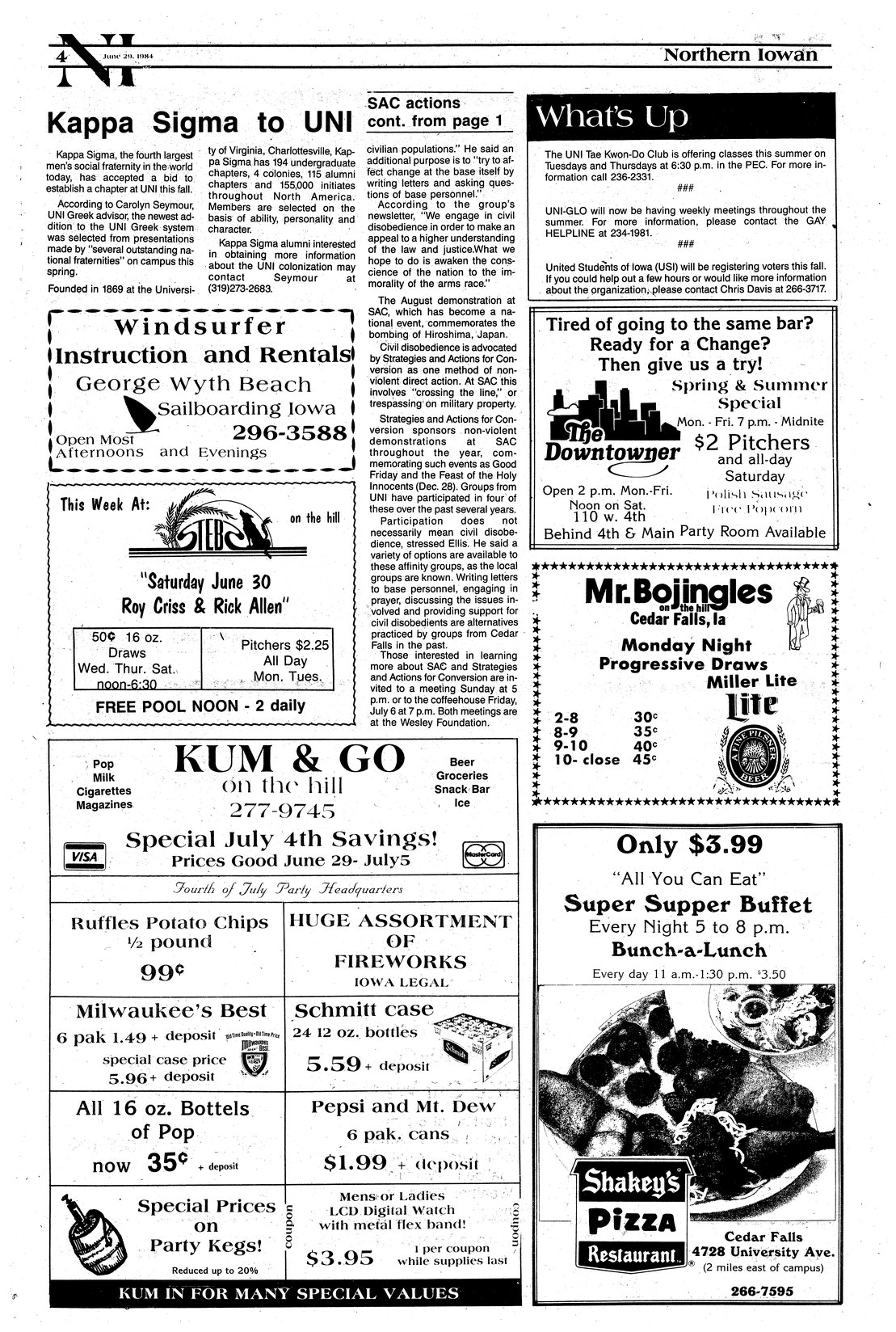 | Kappa Sigma to UNI | Will establish chapter at UNI in fall 1984. |