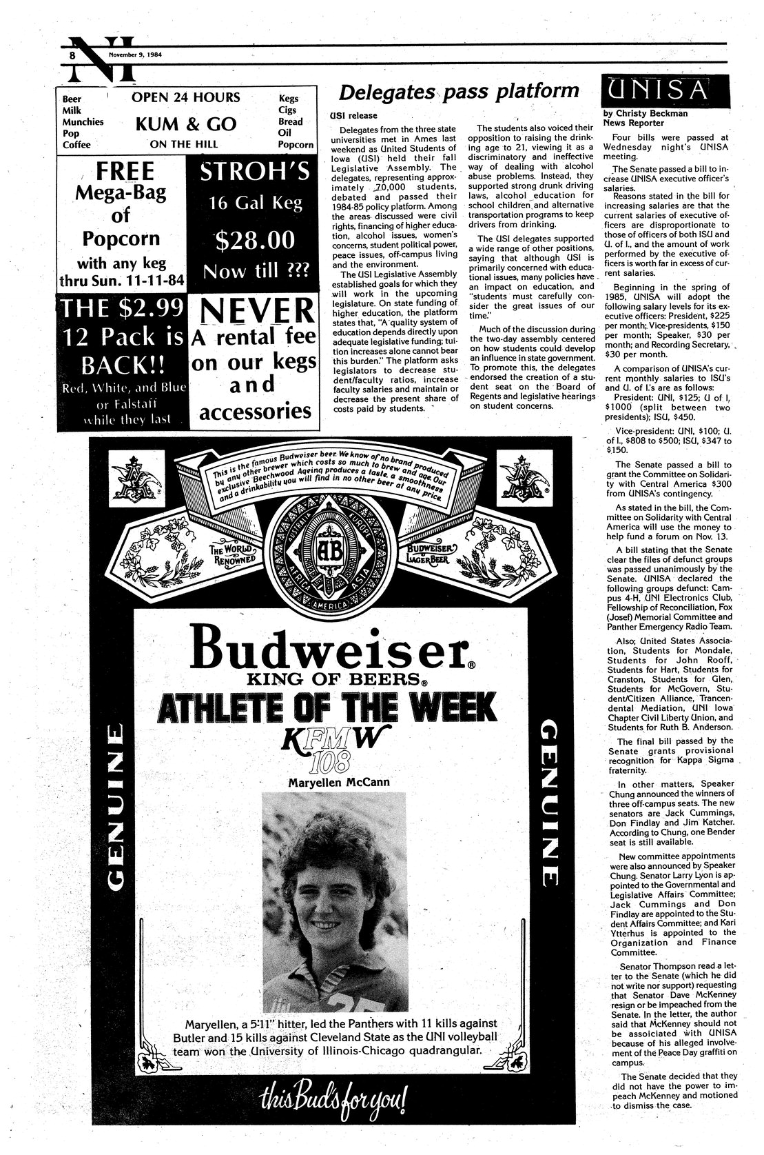 | Delegates pass platform | USI concentrates on legislative goals including opposition to raising of the legal drinking age. |