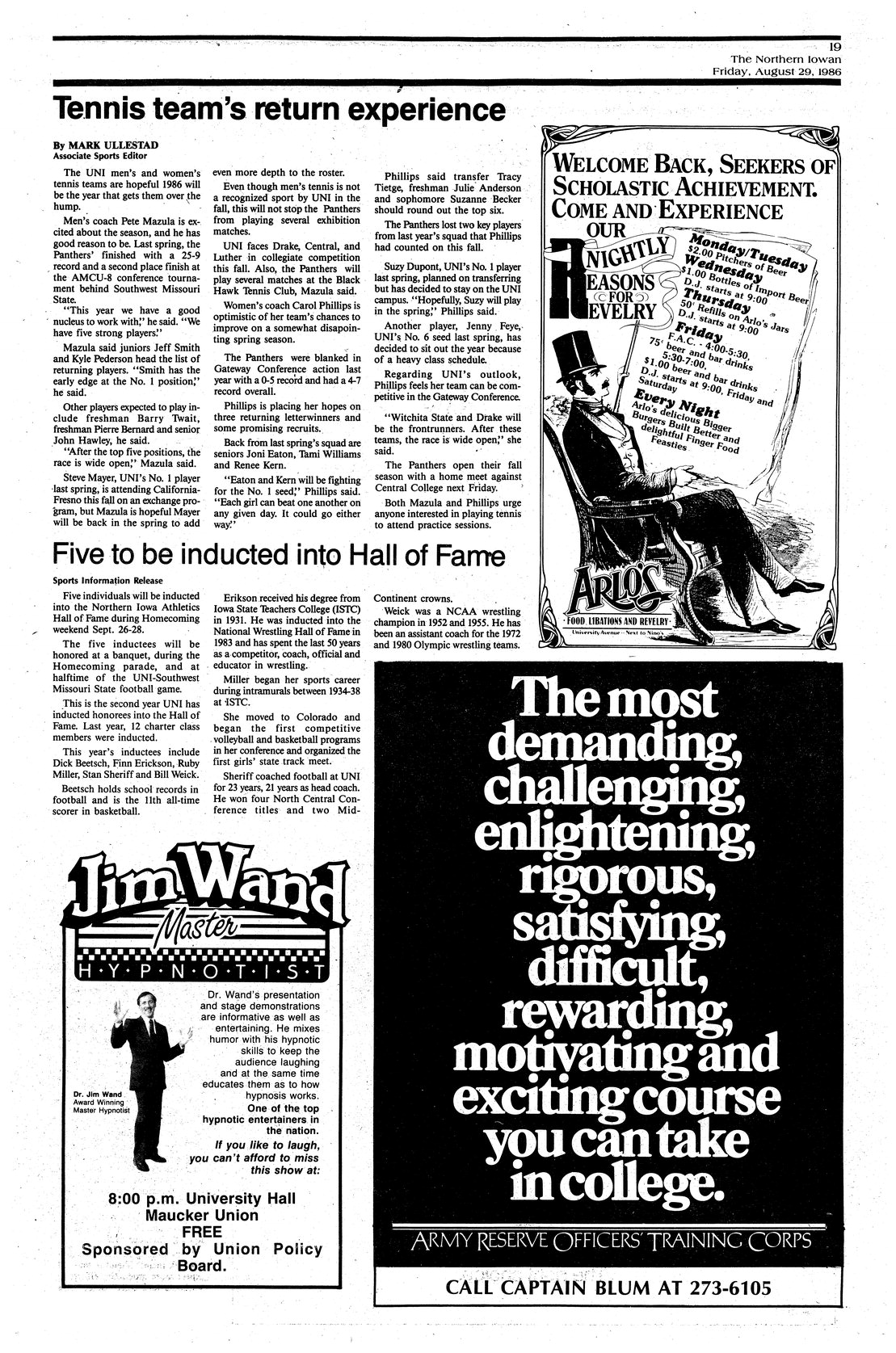 Five to be inducted into Hall of Fame This is the second year UNI has inducted honorees into the Hall of Fame.
