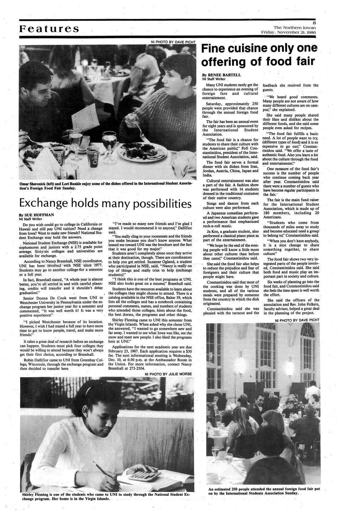 | Exchange holds many possibilities | Students talk about their NSE experiences; photo. |