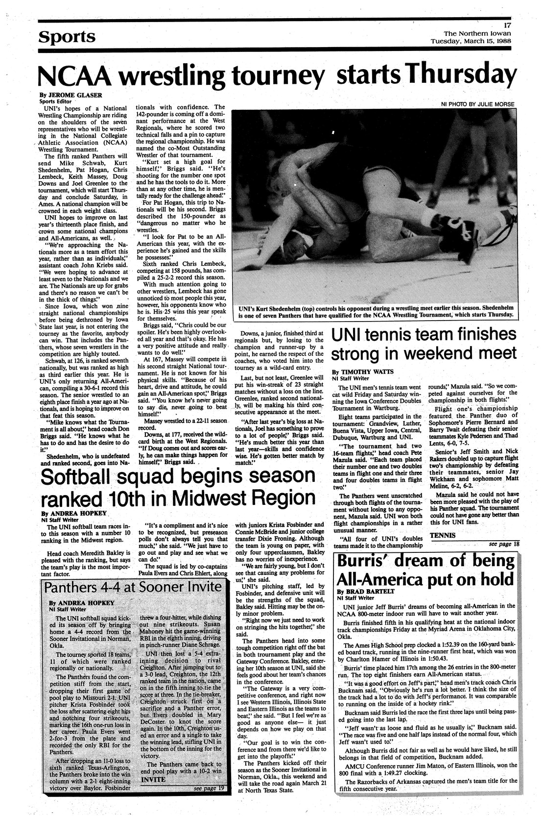 NCAA wrestling tourney starts Thursday UNI will participate in the NCAA tournament beginning Thursday in Ames.