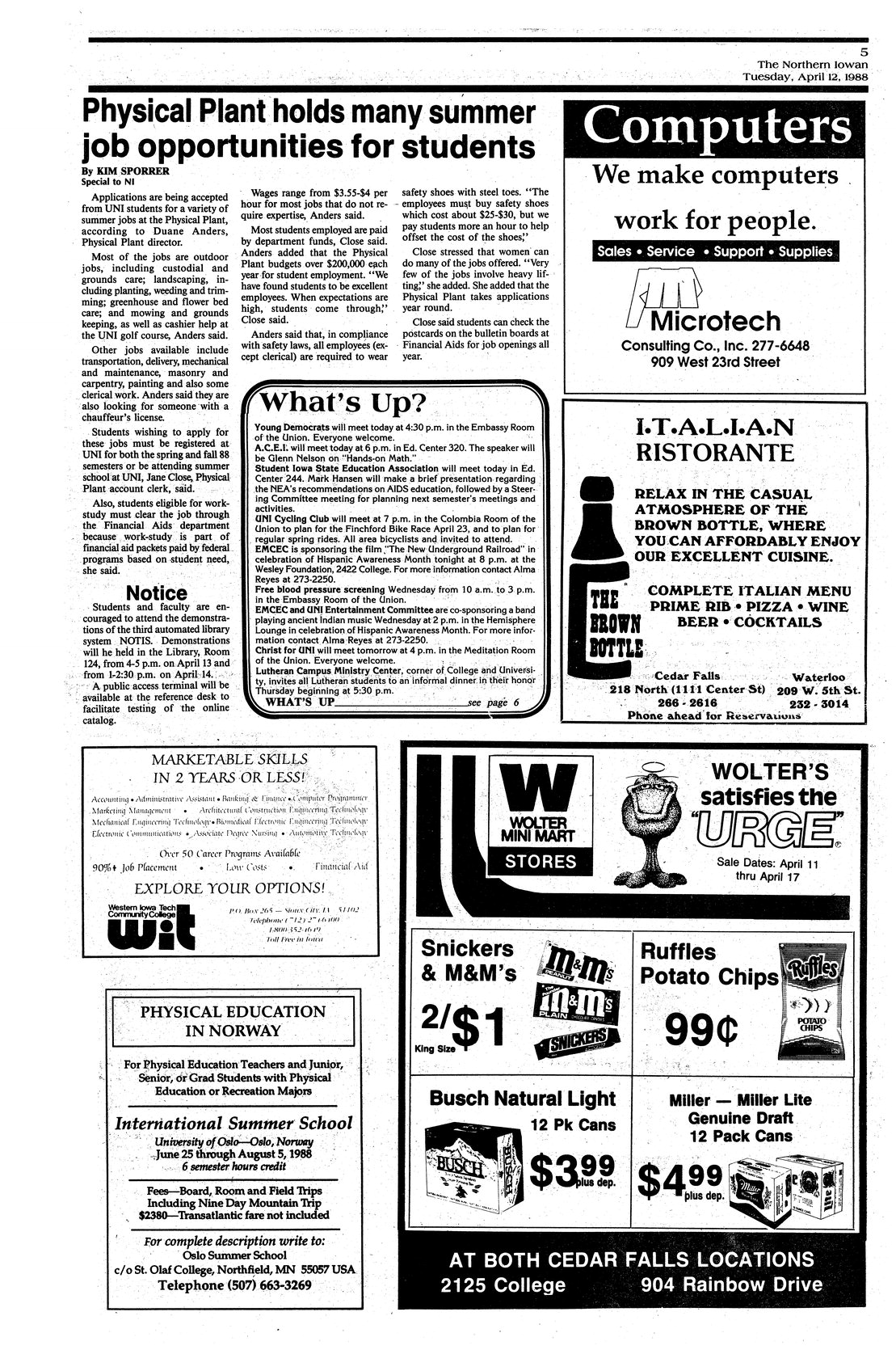 Physical Plant holds many summer job opportunities for students Variety of outdoor jobs available.