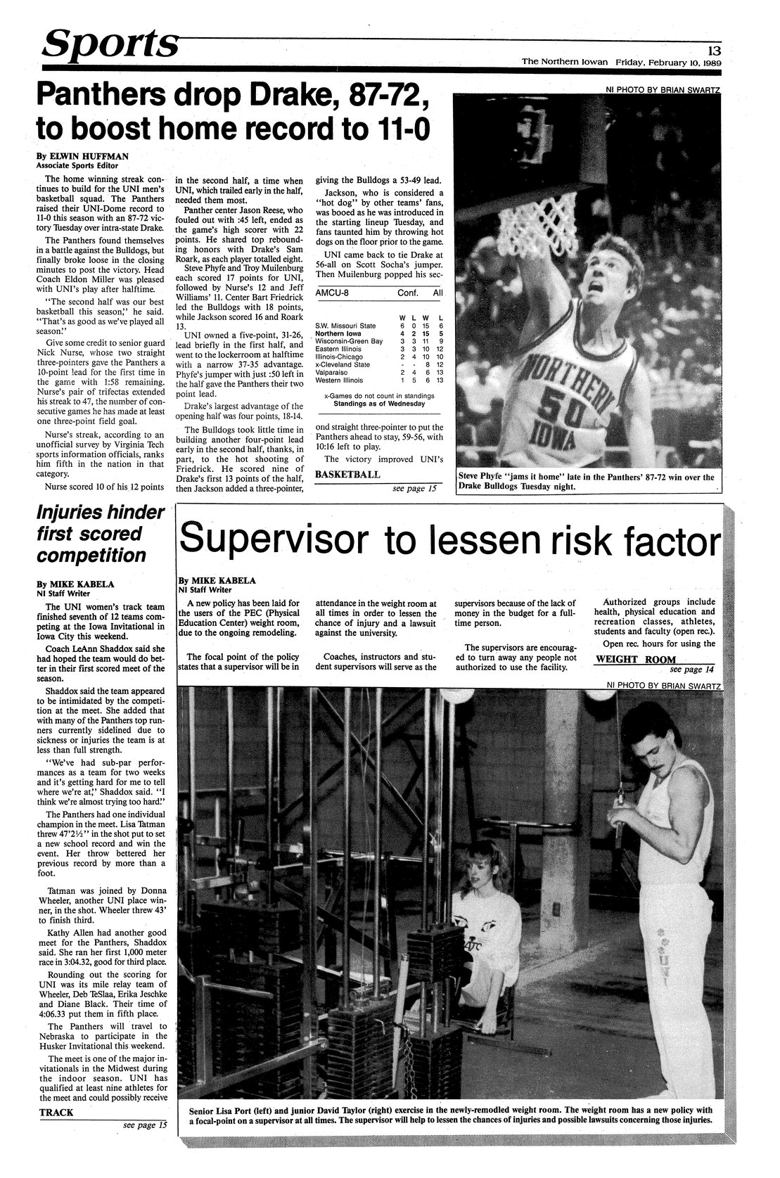 Panthers drop Drake, 87-72, to boost home record to 11-0 Team continues winning streak; photo.