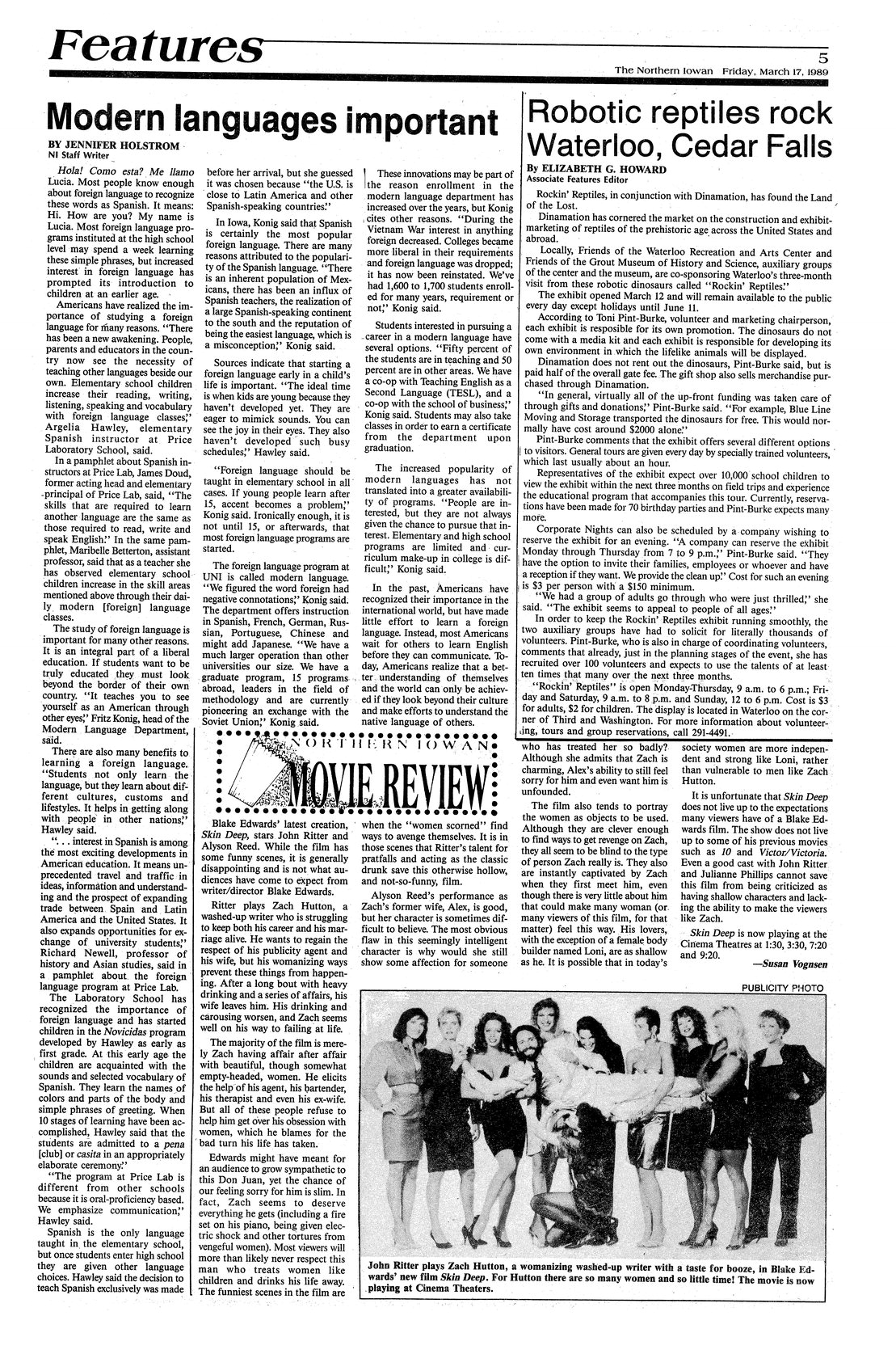 | Movie review | A review of the movie "Skin Deep"' with John Ritter; photo. |
