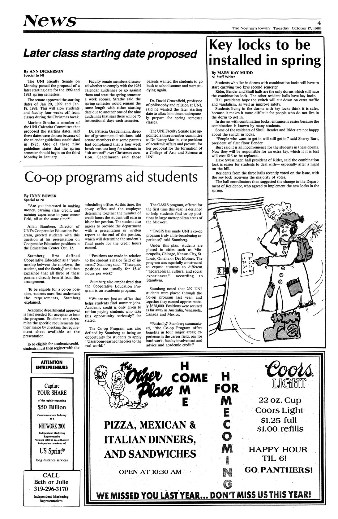 | Later class starting date proposed | Faculty Senate approves calendar stating later in January. |