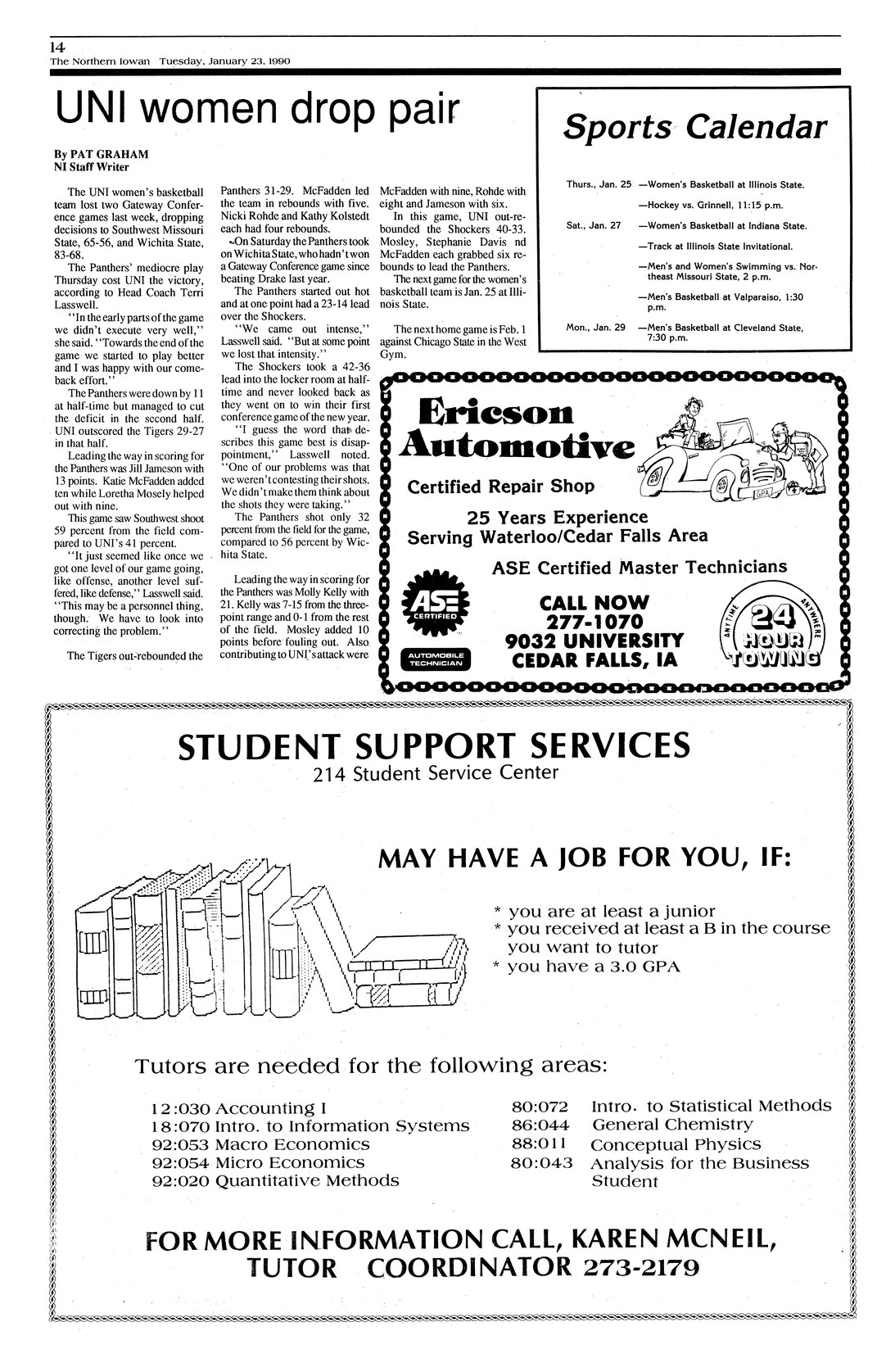 | UNI women drop pair | UNI's women's basketball team was defeated by Southwest Missouri State and Wichita State last week. |