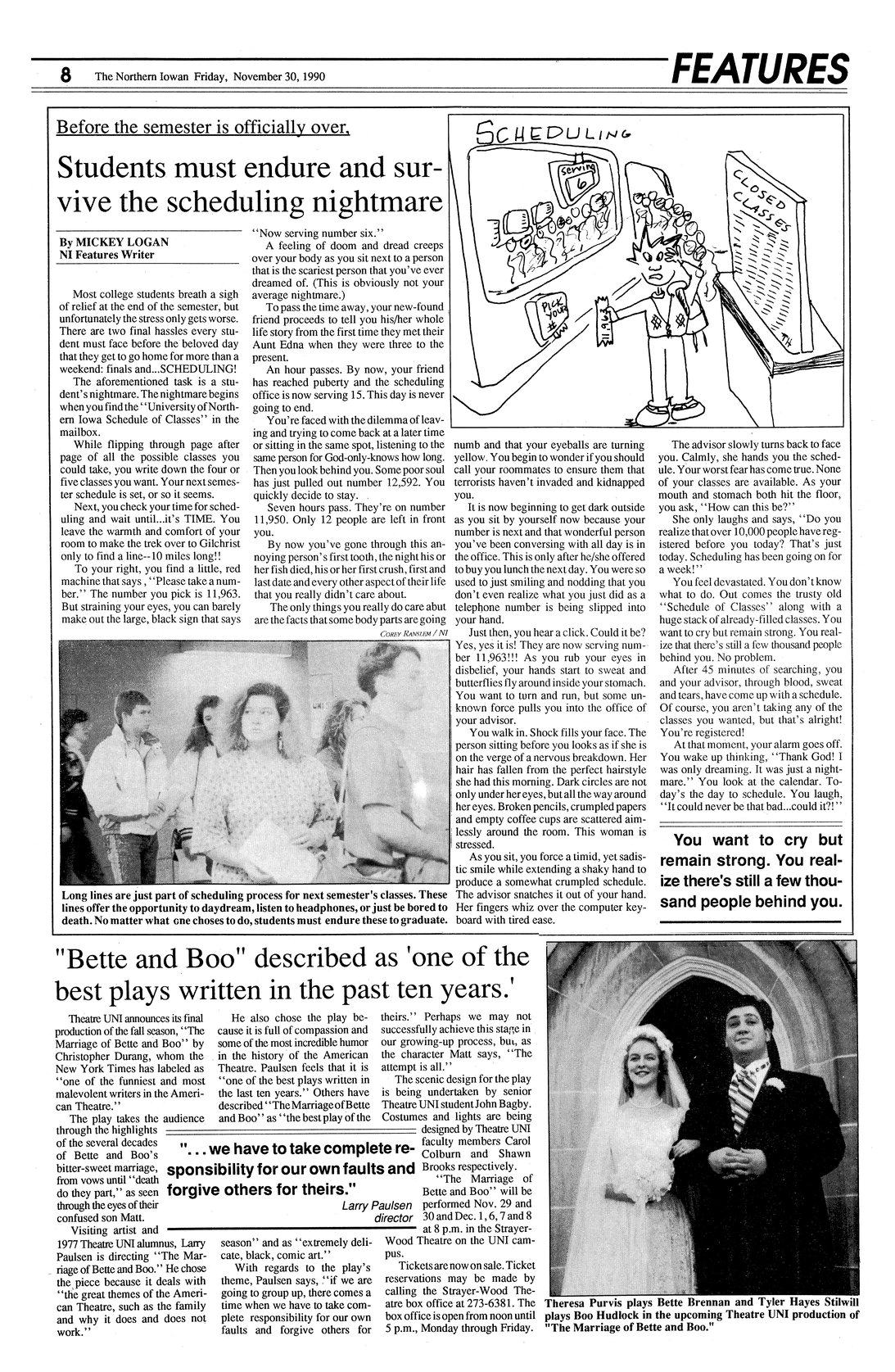 "Bette and Boo" described as 'one of the best plays written in the past ten years.' "Marriage of Bette and Boo" will be performed by Theatre UNI this weekend and next weekend; photo.