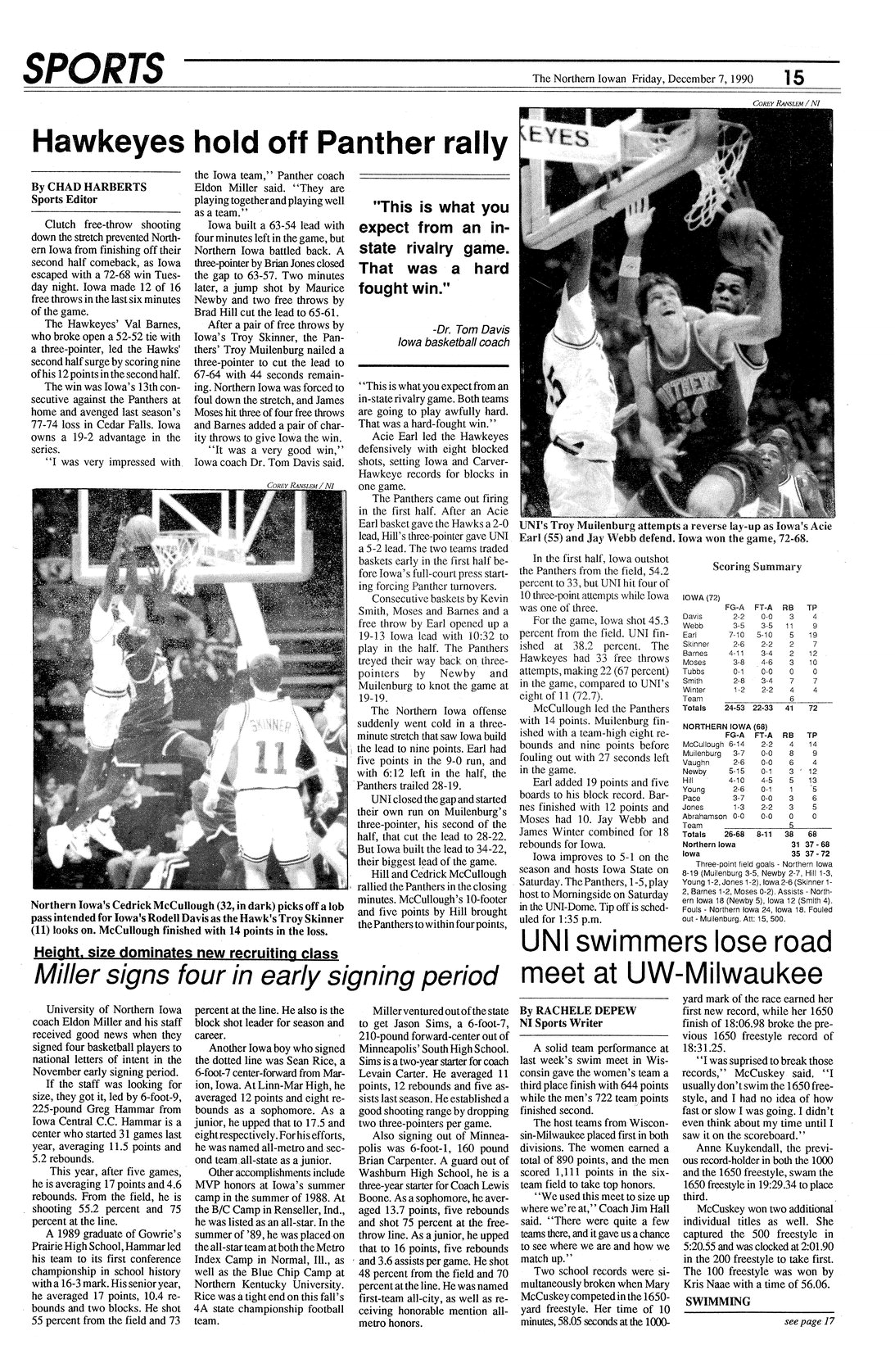 Hawkeyes hold off Panther rally The men's basketball team was defeated, 72-68, by the Iowa Hawkeyes; photo.