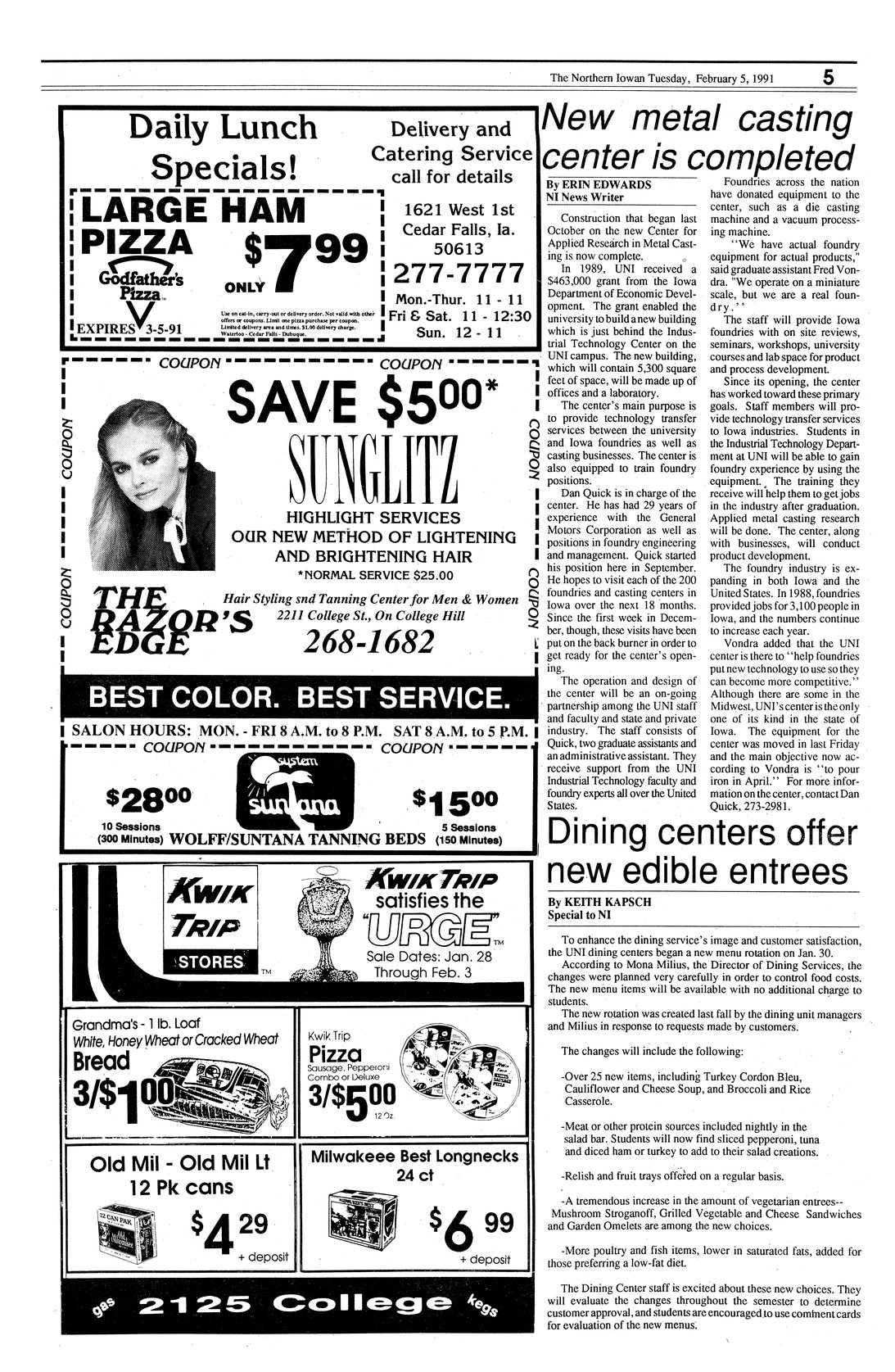 | Dining center offer new edible entrees | Announcement of a new menu rotation for campus dining centers, which began January 30. |