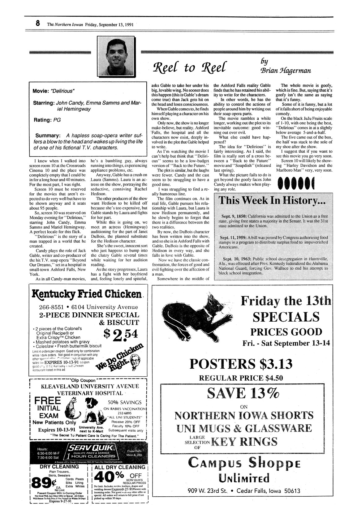 | Reel to Reel | Review of the movie "Delirious" with John Candy, Emma Samms, and Mariel Hemingway. |