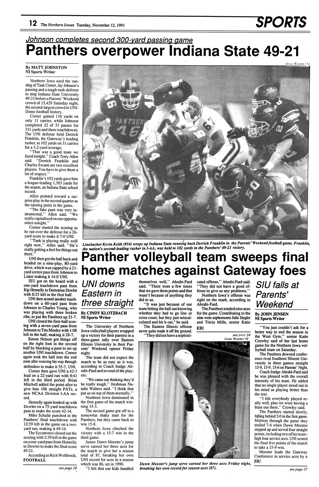 SIU falls at Parents' Weekend UNI beat Southern Illinois University three games to zero on Saturday night. It was the Panther's Parents' Night.