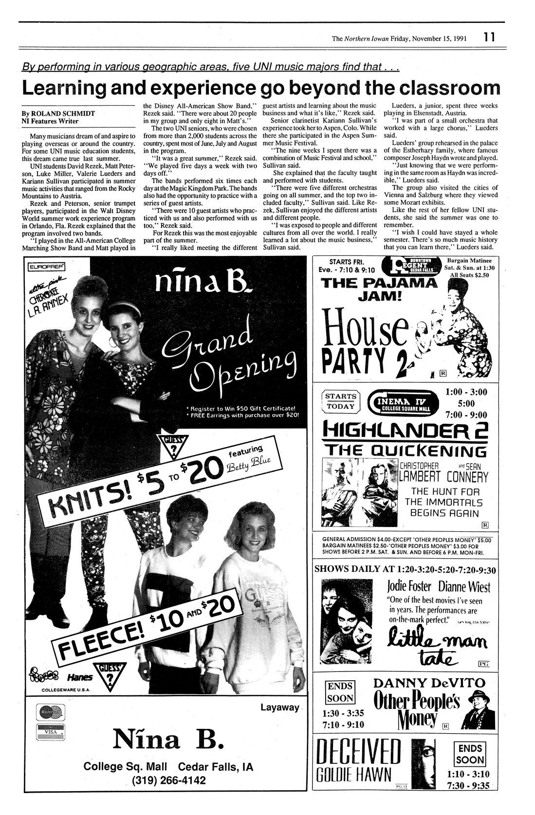 | Learning and experience go beyond the classroom; by performing in various geographic areas, five UNI music majors find that.. | Students play overseas during summer. |