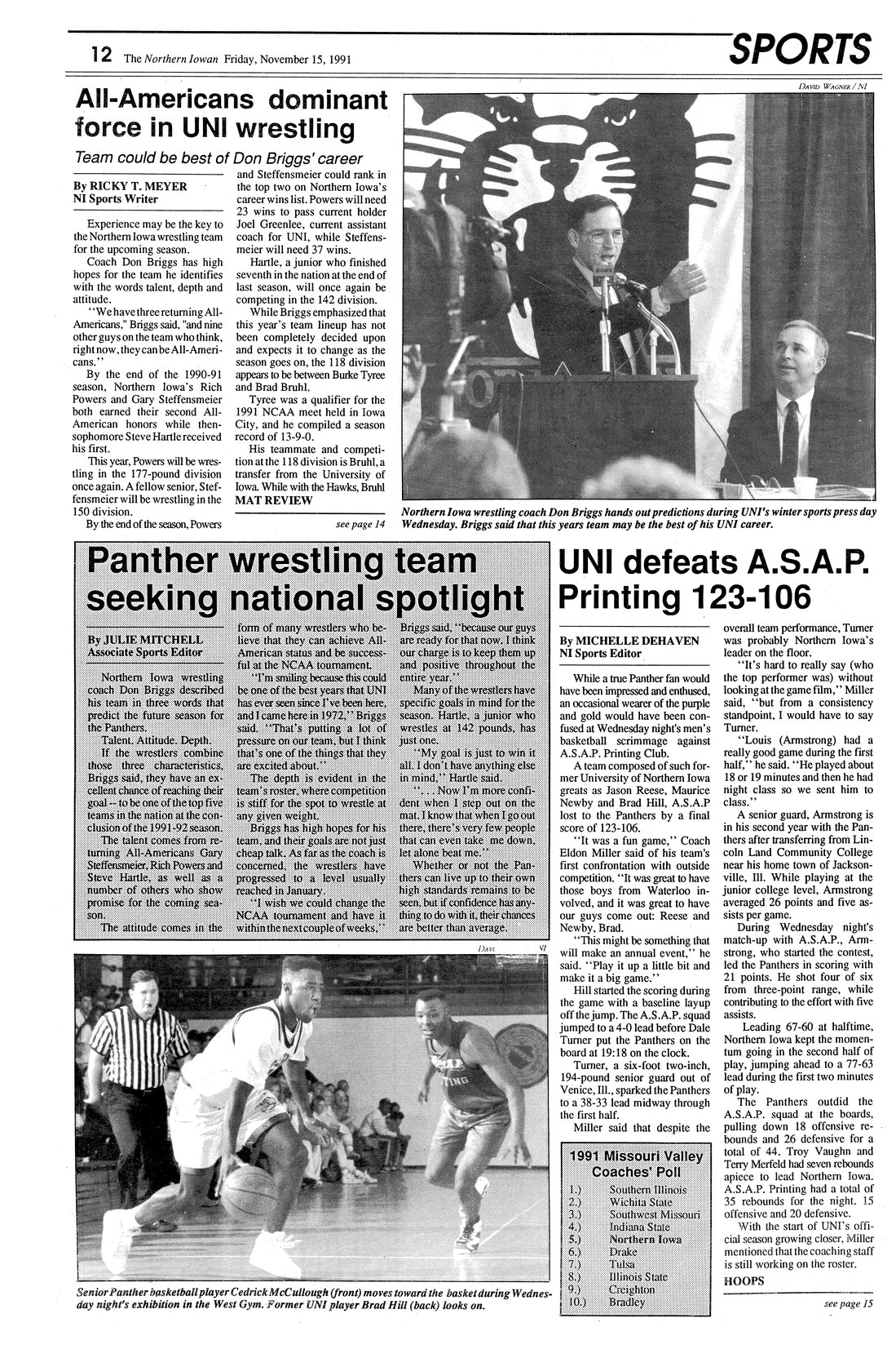 All-Americans dominant force in UNI wrestling Panther team will soon begin its 1991 season; photo.