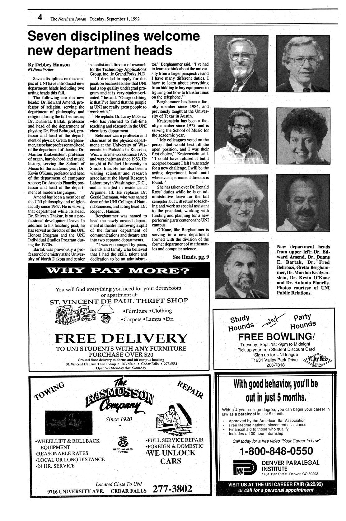| Seven disciplines welcome new department heads | Short biographical sketches of new heads; photo. |