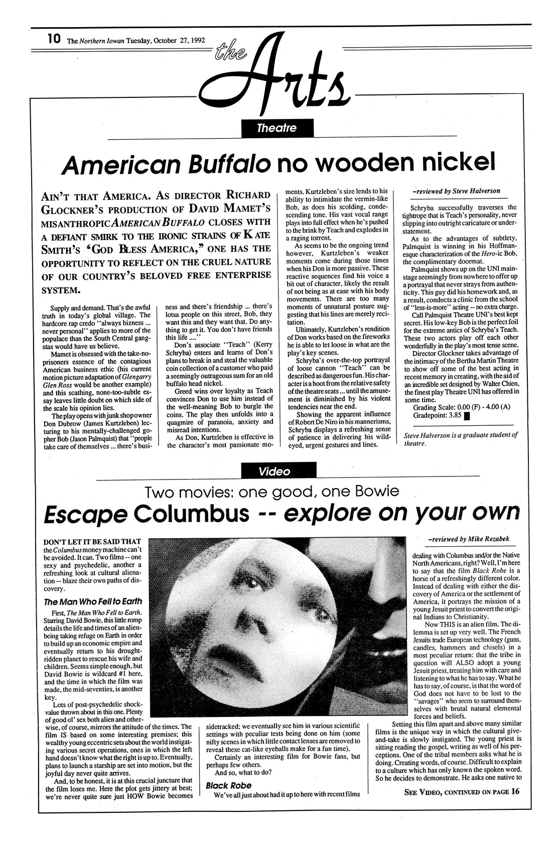 Escape Columbus--explore on your own; two movies: one good one Bowie Review of "The Man Who Fell to Earth" and "Black Robe".