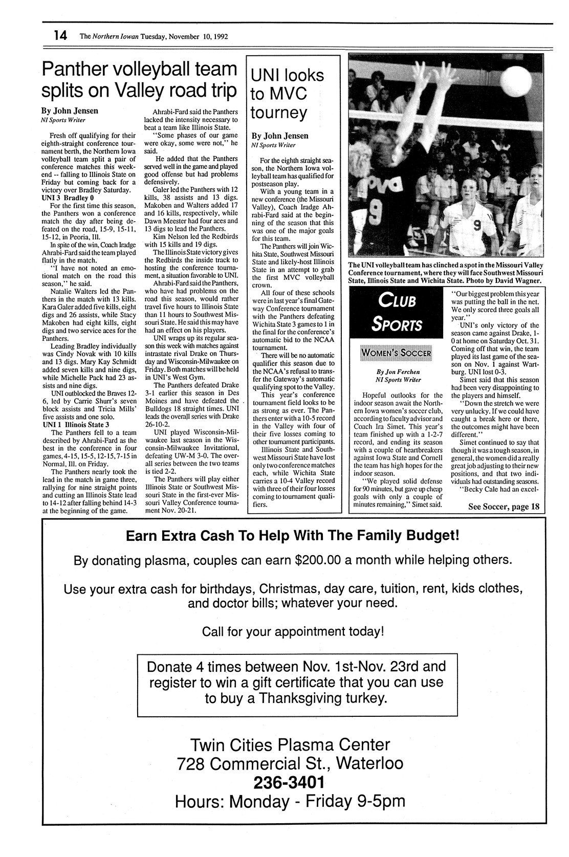 | UNI looks to MVC tourney | Northern Iowa volleyball qualifies for postseason play; photo. |