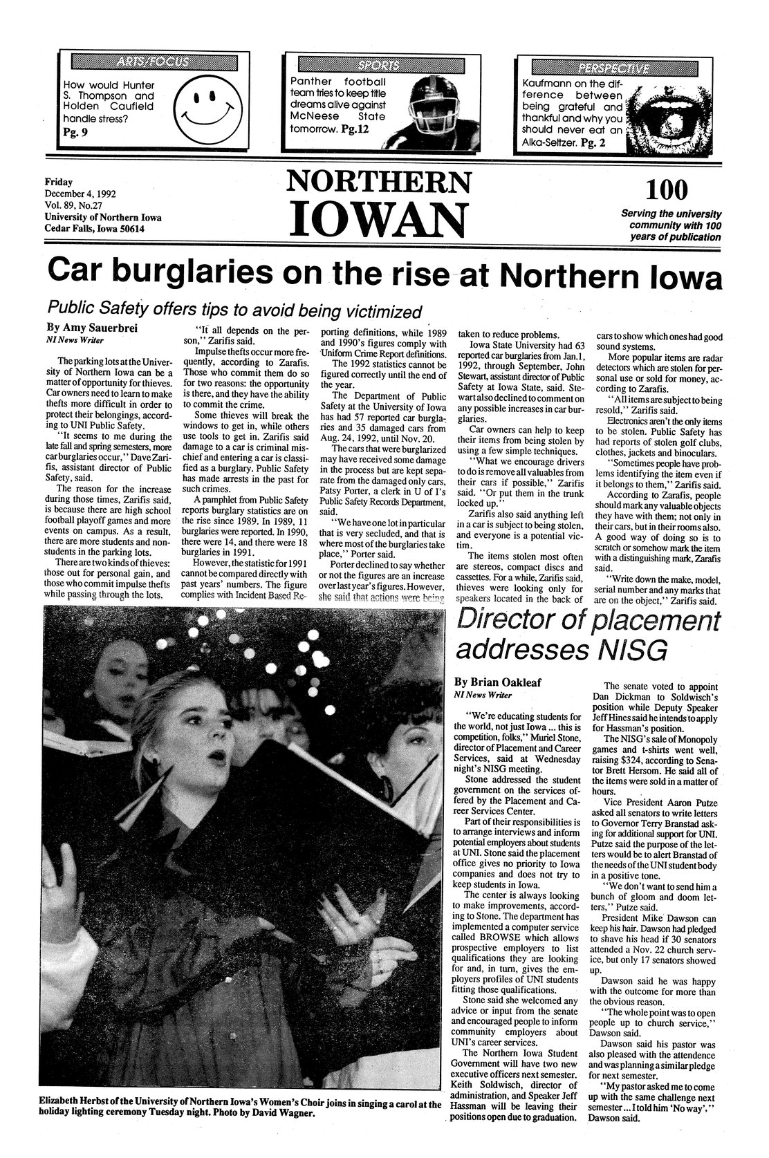 Car burglaries on the rise at Northern Iowa; Public Safety offers tips to avoid being victimized Dave Zarifis reports on trends.