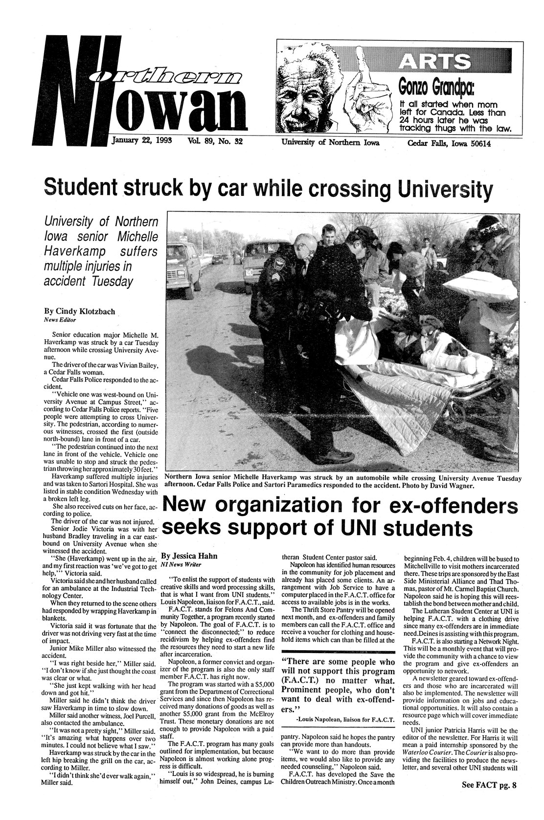 New organization for ex-offenders seeks support of UNI students Felons and Community Together attempts to reduce recidivism; developing program of services to felons and families.
