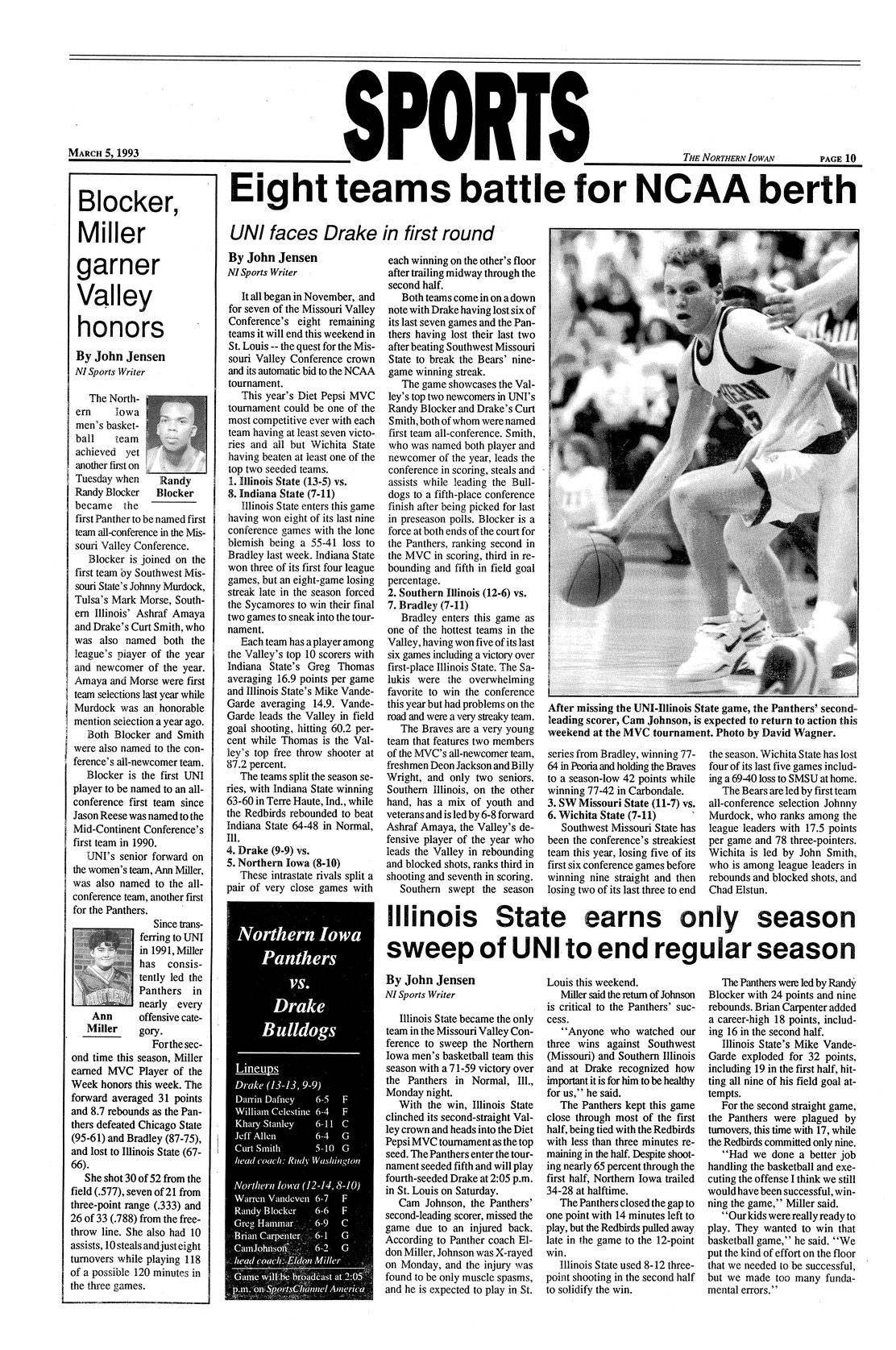 Blocker, Miller garner Valley honors Randy Blocker named first team all-conference in MVC, also Ann Miller named MVC player of the week for the second time this season; photo.