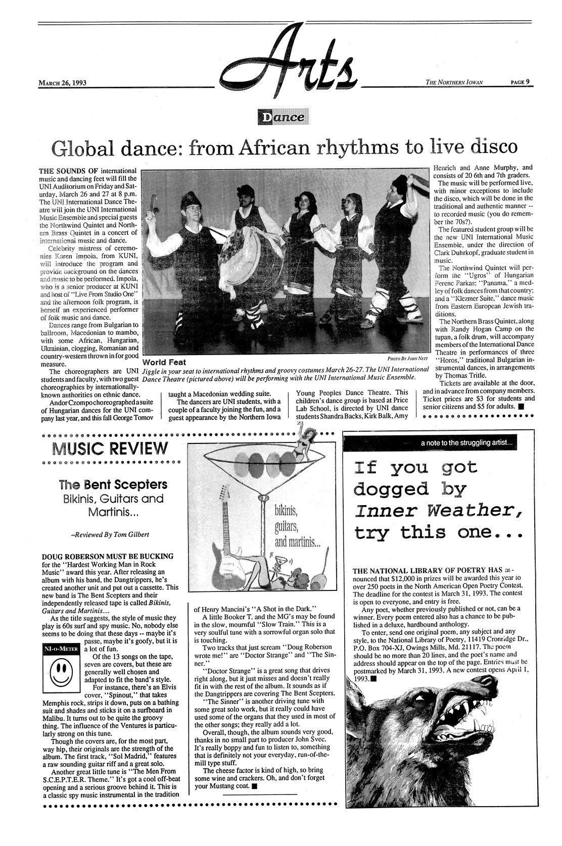 | Global dance: from African rhythms to live disco | Will present program of international dance and music; photo. |