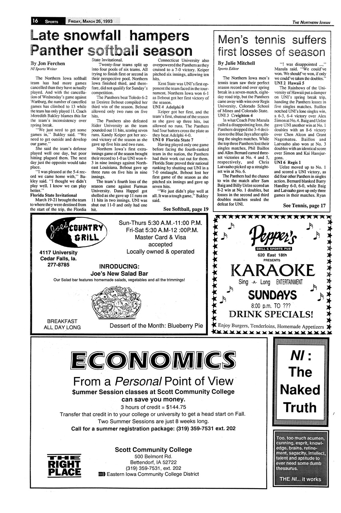 | Late snowfall hampers softball season | Snowstorm causing cancellation of many Panther games. |