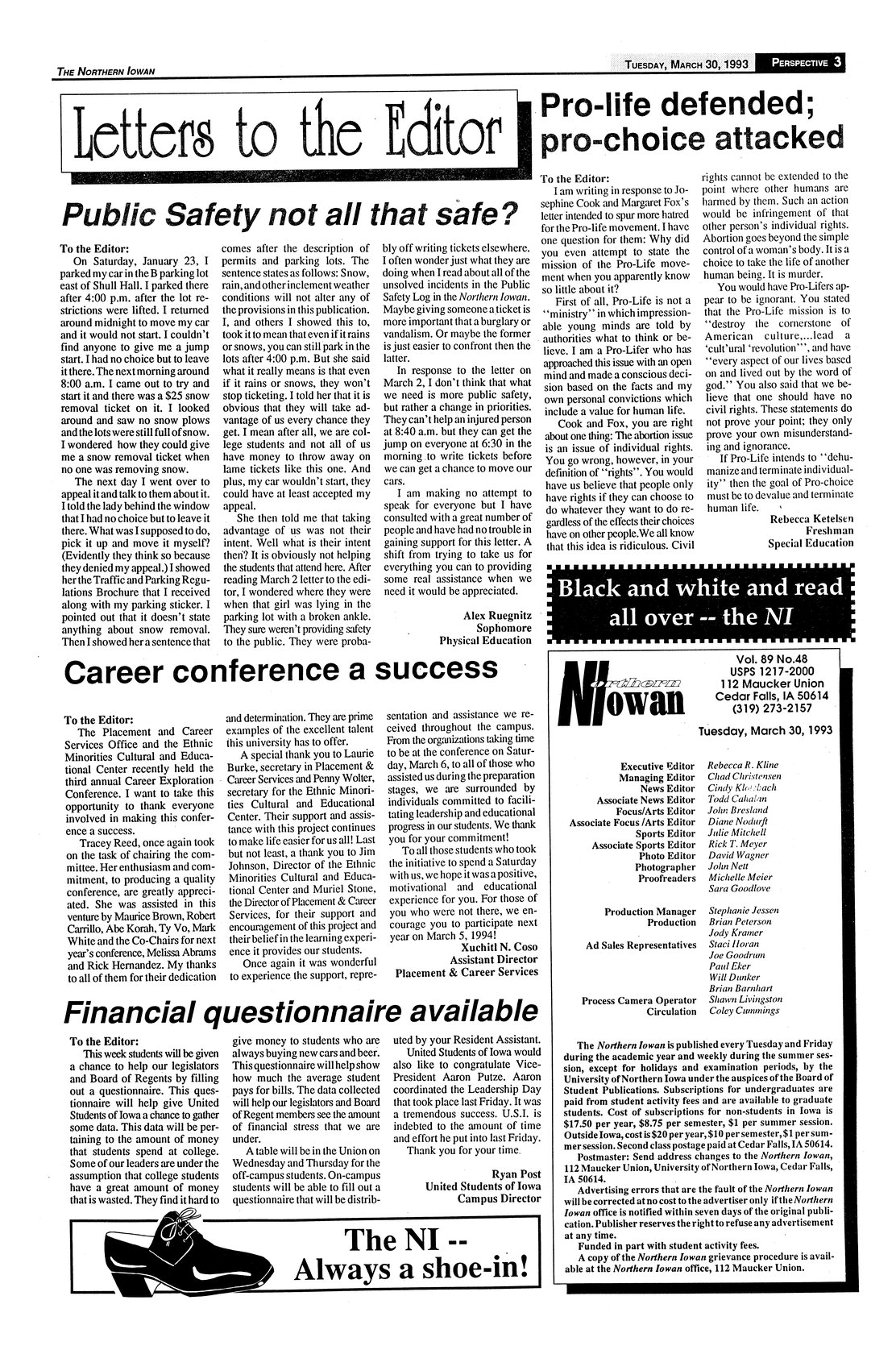 | Pro-life defended; pro-choice attacked | Believes recent letter misstated position of those who are against abortion. |