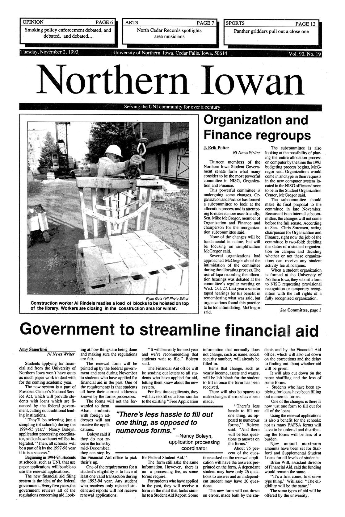 Untitled Crane lifts blocks to Library roof for current construction; photo.