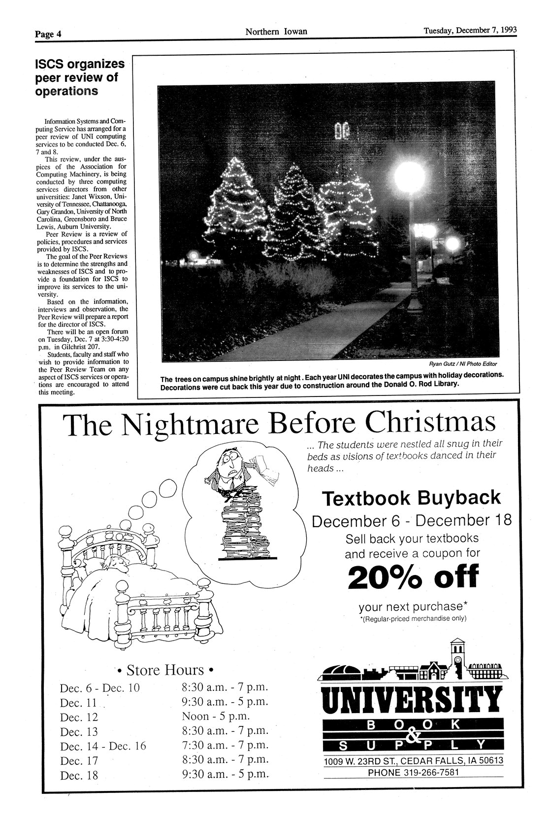 | Untitled | Christmas trees decorated near Campanile; photo. |