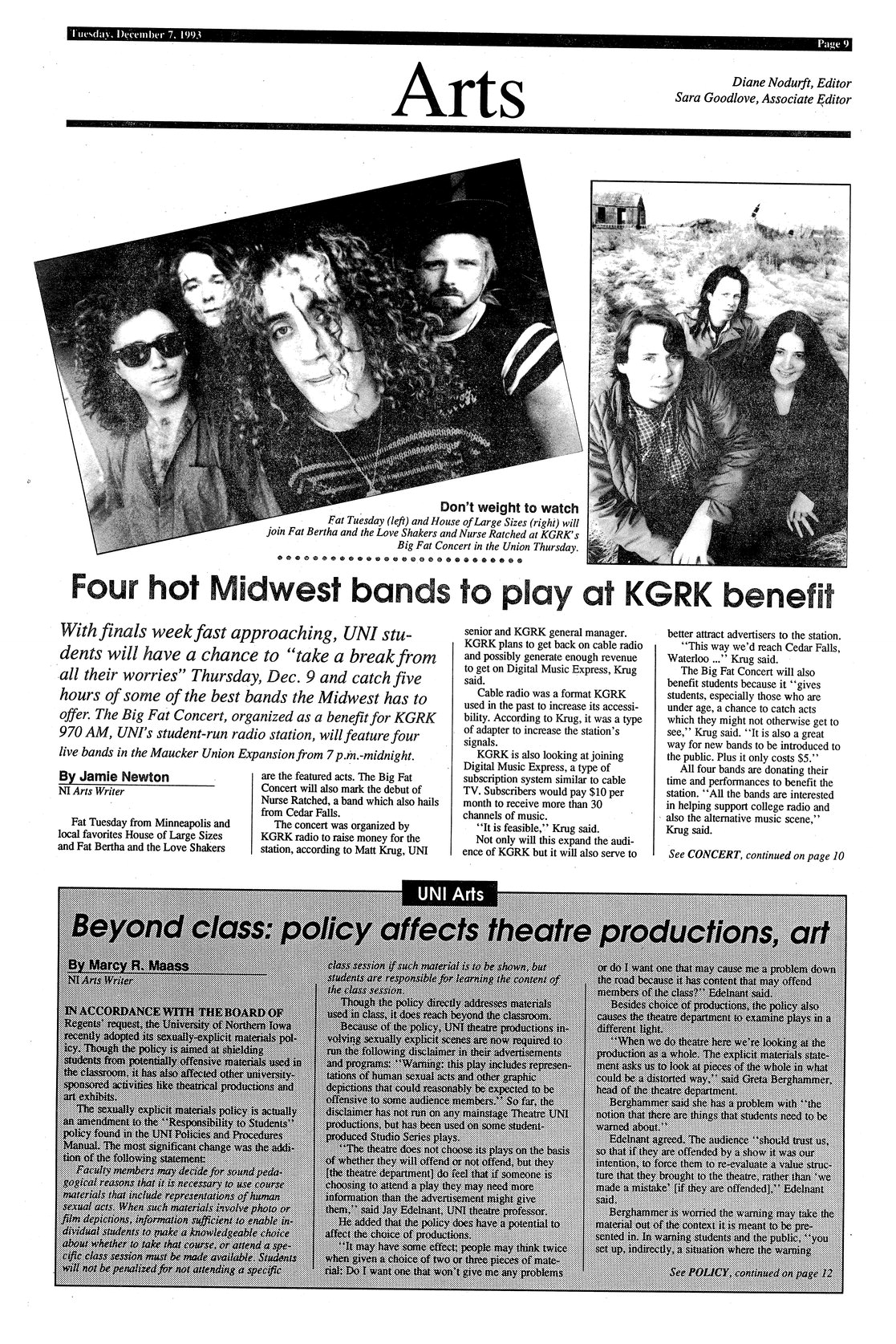 | Four hot Midwest bands to play at KGRK benefit | HOLS, Fat Bertha, Fat Tuesday, and Nurse Ratched will play; photo. |