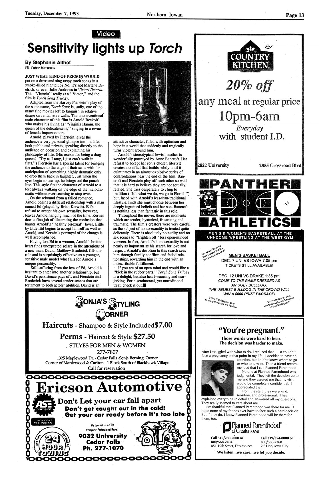 | Sensitivity lights up "Torch" | A review of the movie "Torch Song" with Arnold Beckoff. |