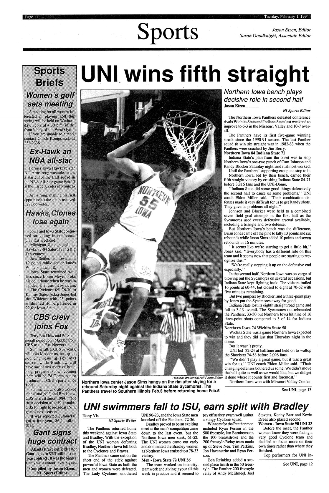 UNI wins fifth straight UNI men's basketball team defeated Wichita State and Indiana State last weekend; photo.