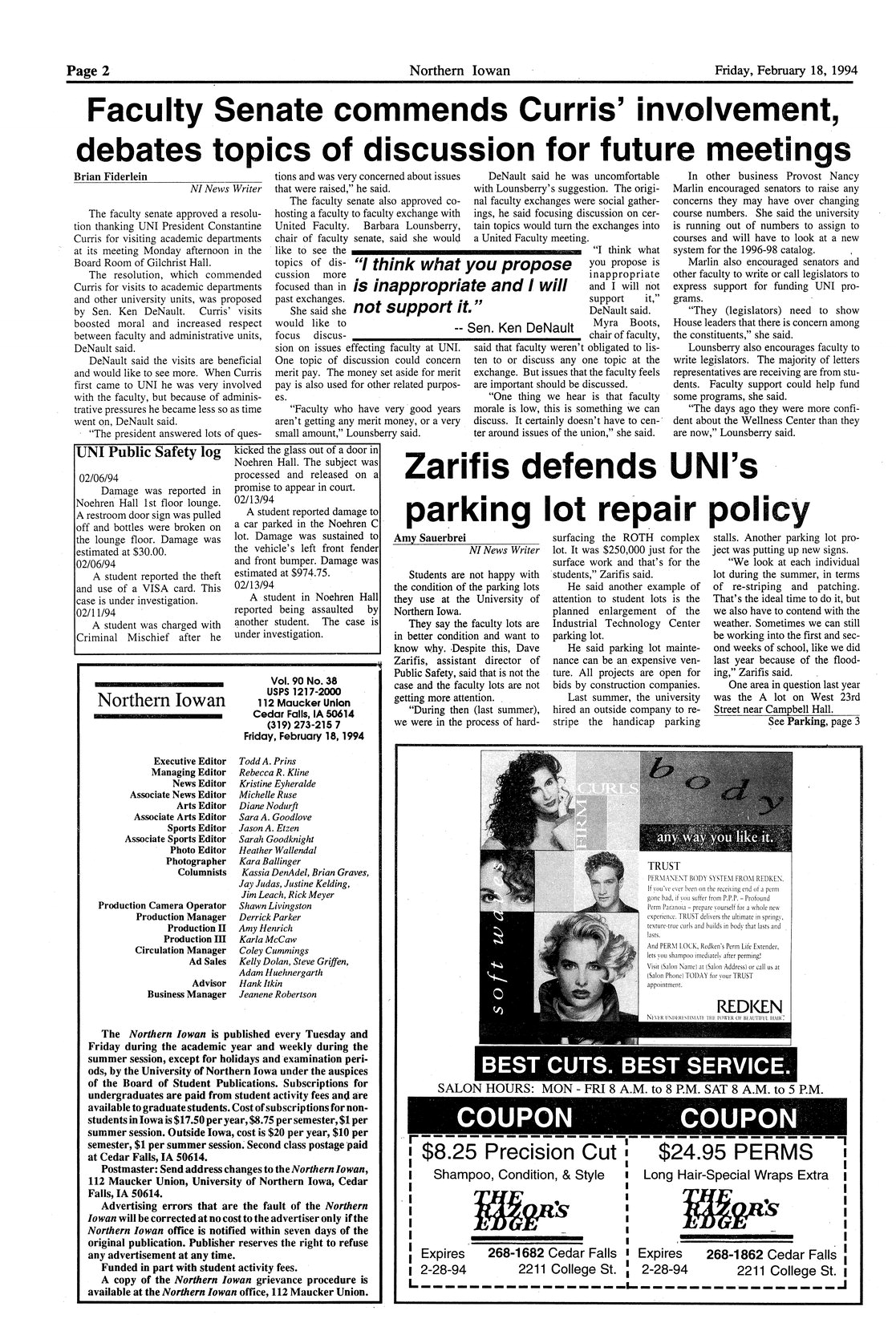 | Zarifis defends UNI's parking lot repair policy | Responds to charges that faculty lots are in better shape than student lots. |
