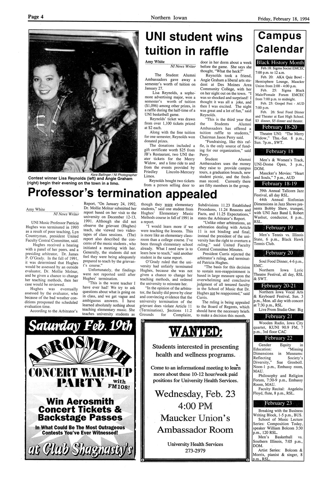 | UNI student wins tuition in raffle | Lisa Reynolds wins tuition and other prizes; photo. |