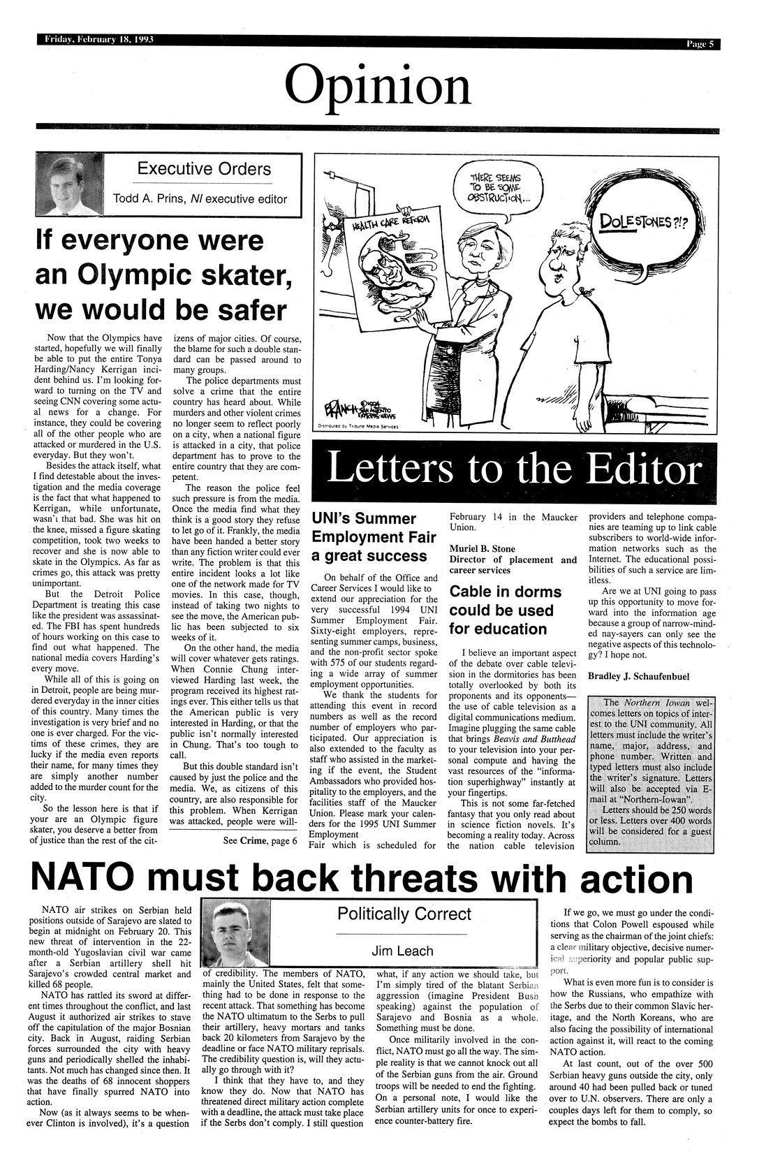 | If everyone were an Olympic skater, we would be safer | Believes assault on Nancy Kerrigan received exaggerated amount of attention. |