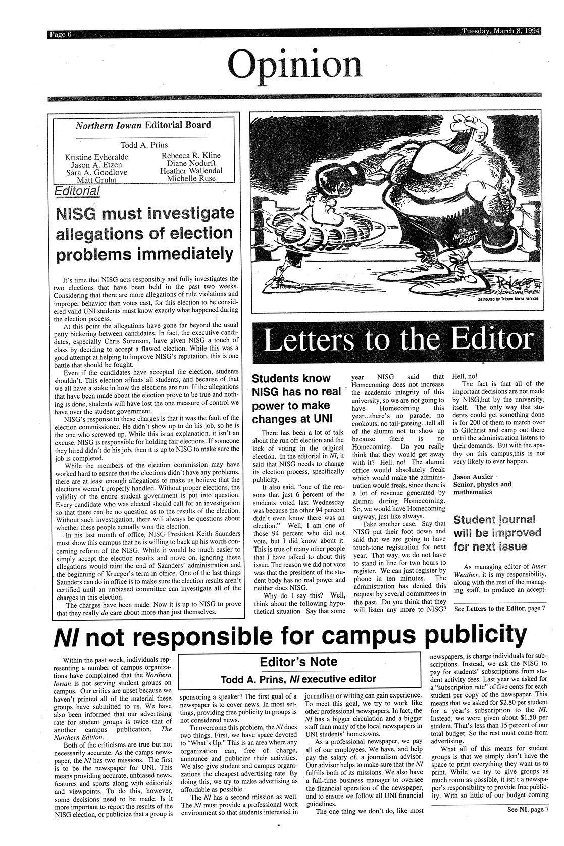 NI not responsible for campus publicity Explains priorities for campus newspaper.