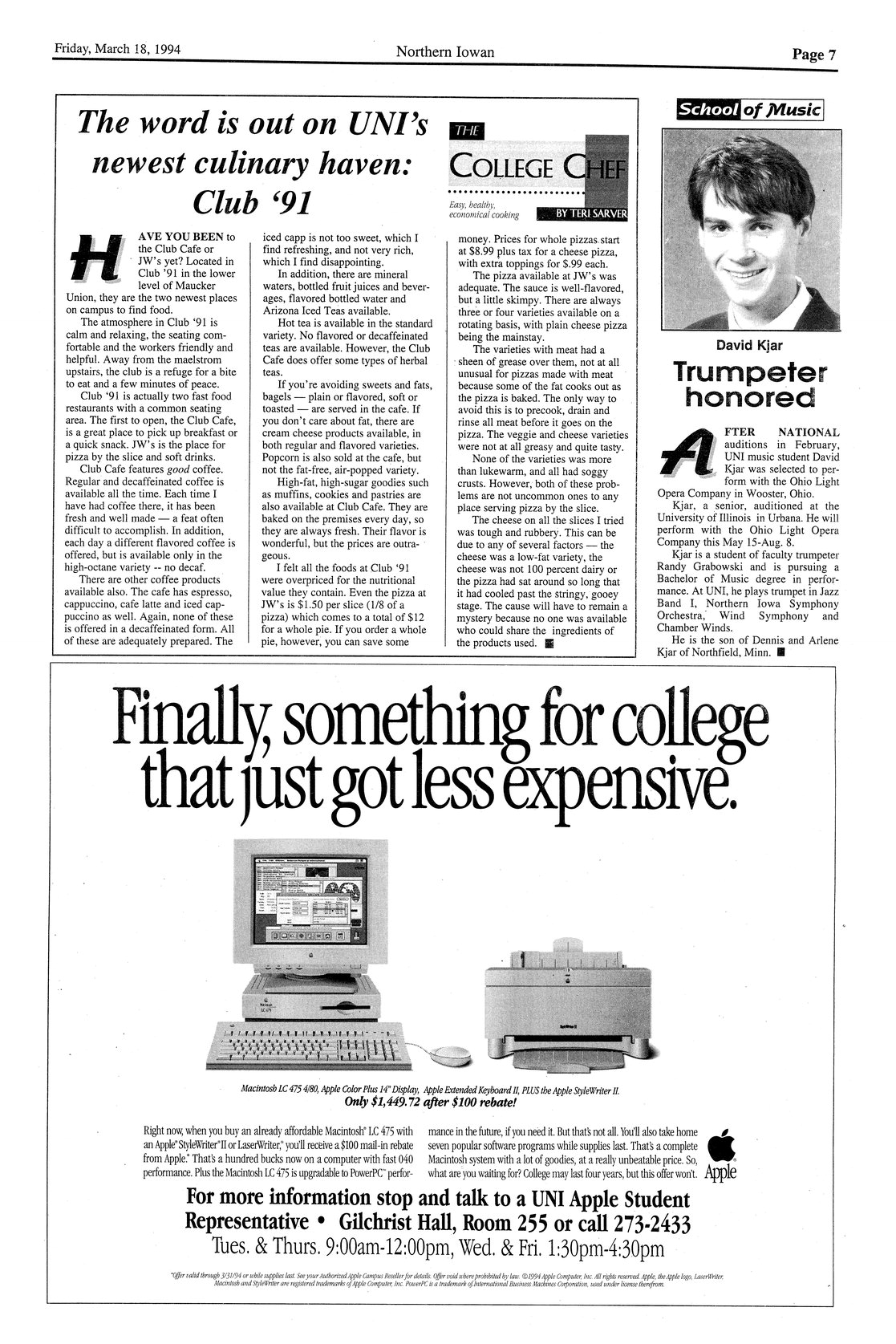 | The word is out on UNI's newest culinary haven: Club '91 | Reviews food served at new facility. |