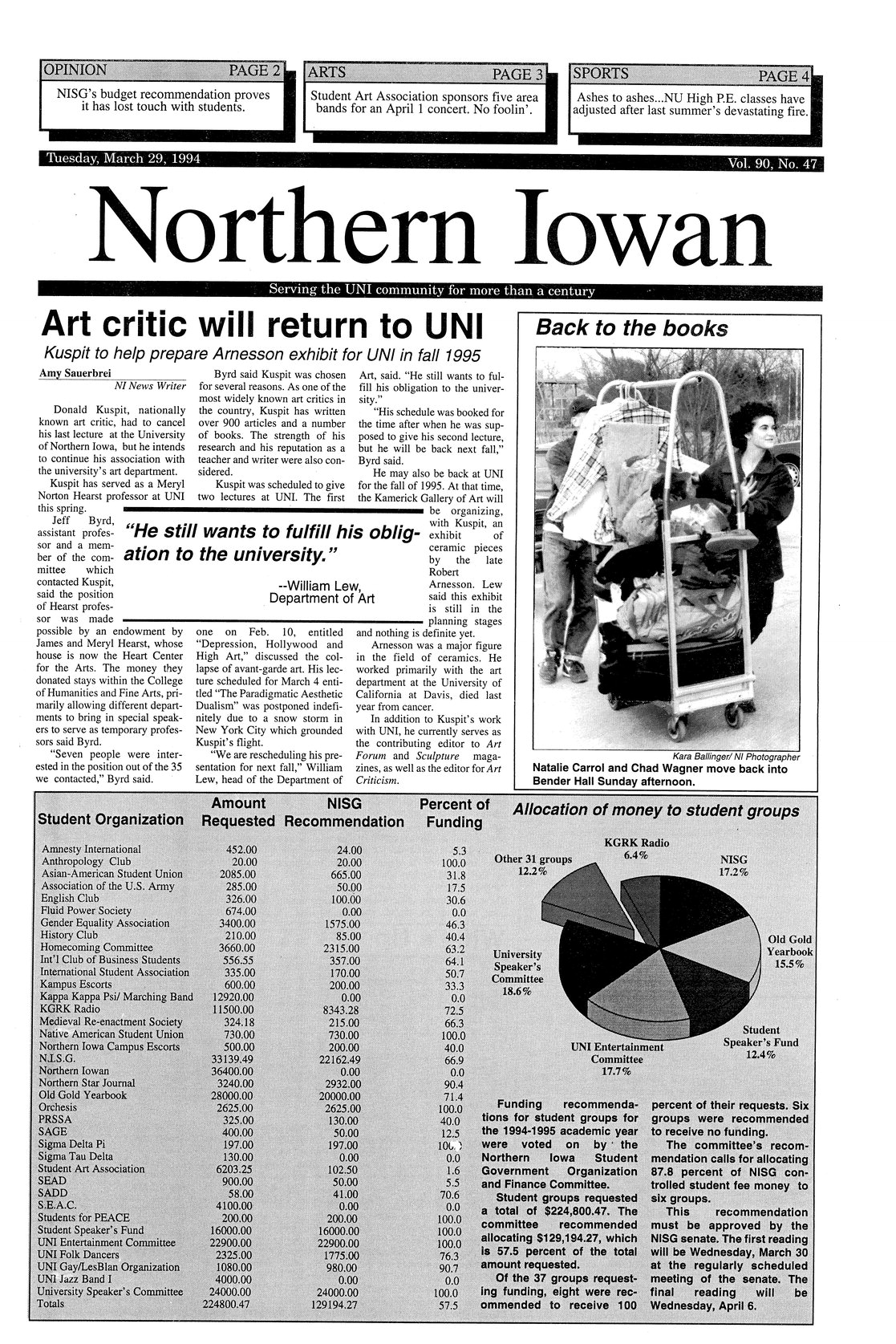 | Art critic will return to UNI; Kuspit to help prepare Arnesson exhibit for UNI in fall 1995 | Donald Kuspit will reschedule lecture. |