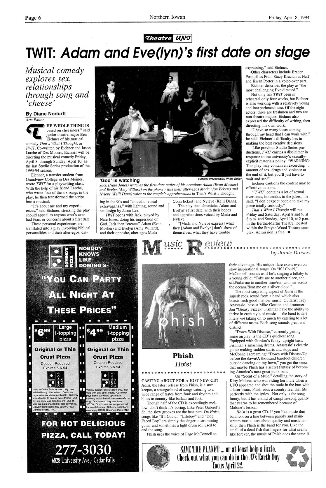 | TWIT: Adam and Eve(lyn)'s first date on stage | Preview of new play; photo. |
