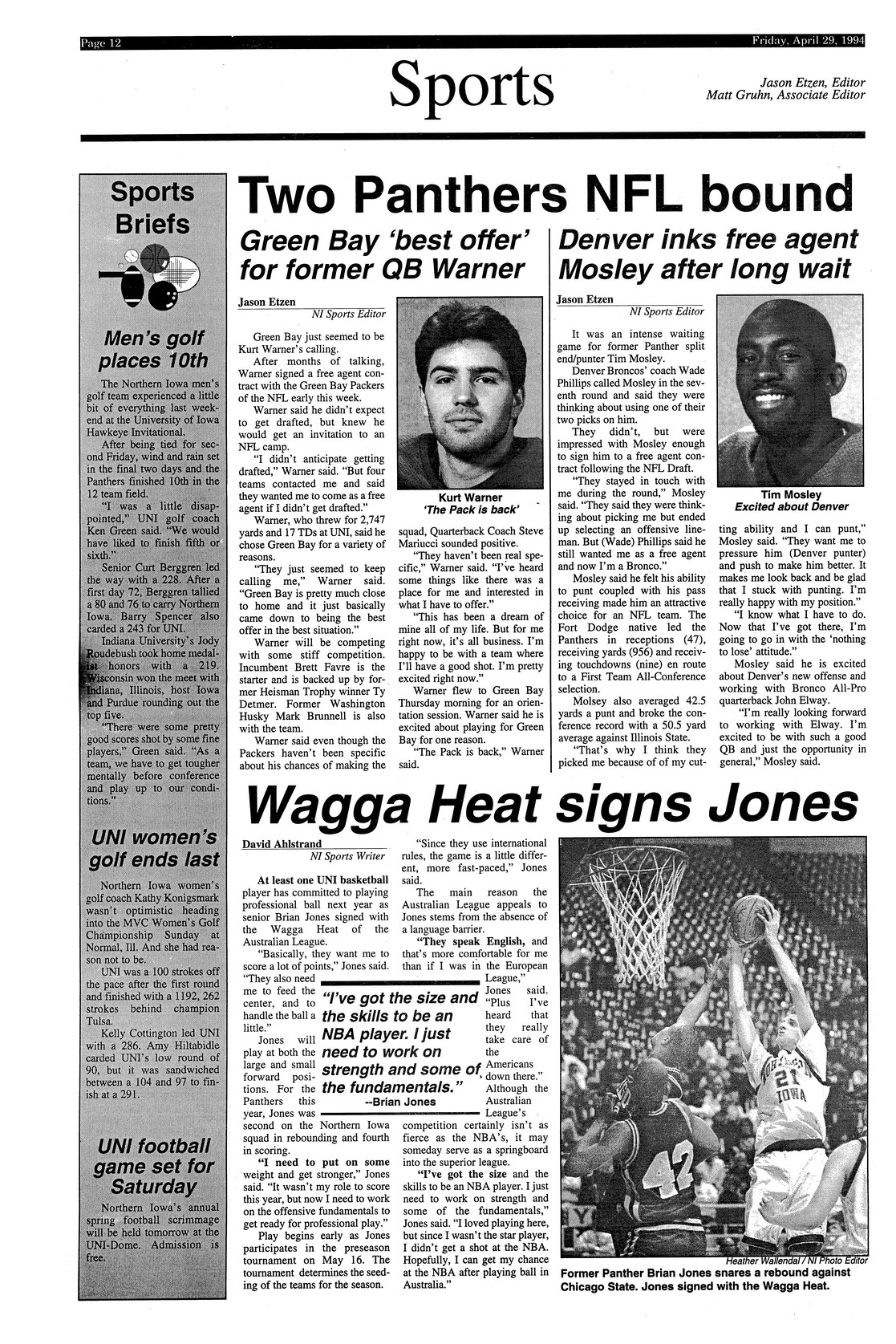 | Green Bay 'best offer' for former QB Warner | Profile of former UNI quarterback Kurt Warner, who is now with Green Bay Packers; photo. |