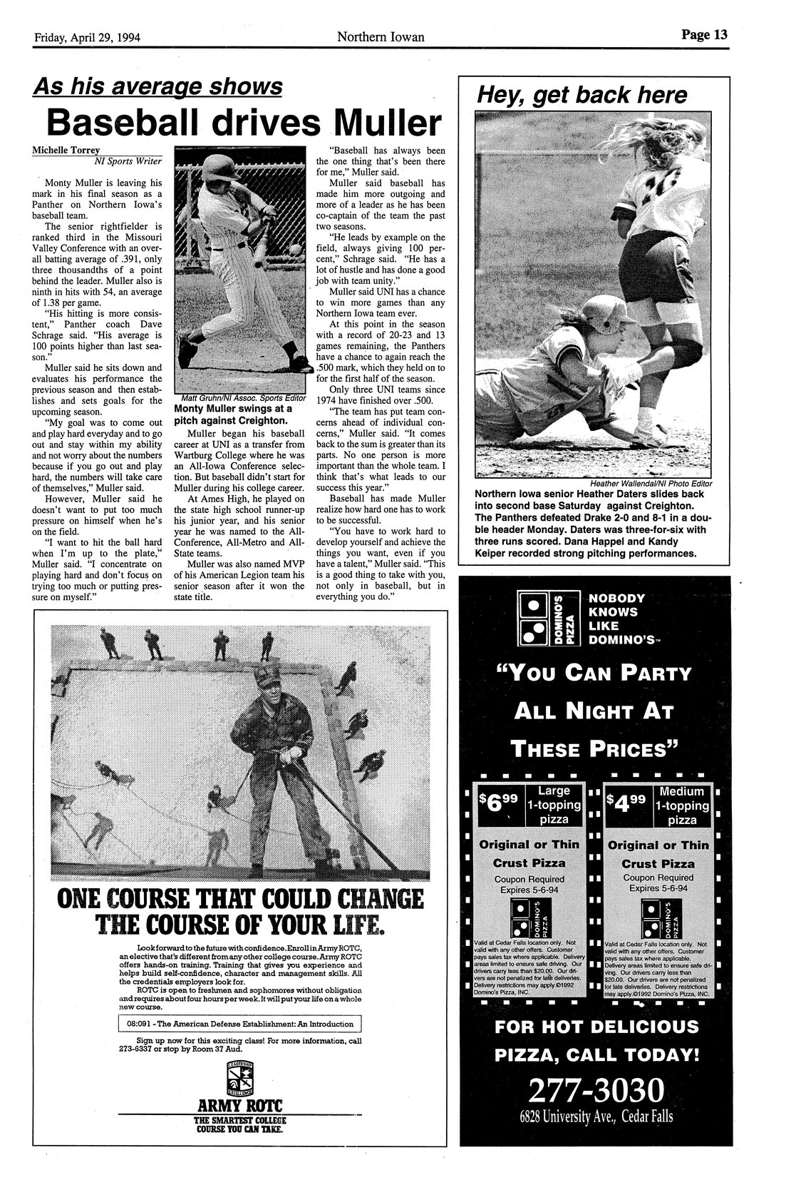 | As his average shows: baseball drives Muller | Profile of Panther's senior rightfielder Monty Muller; photo. |