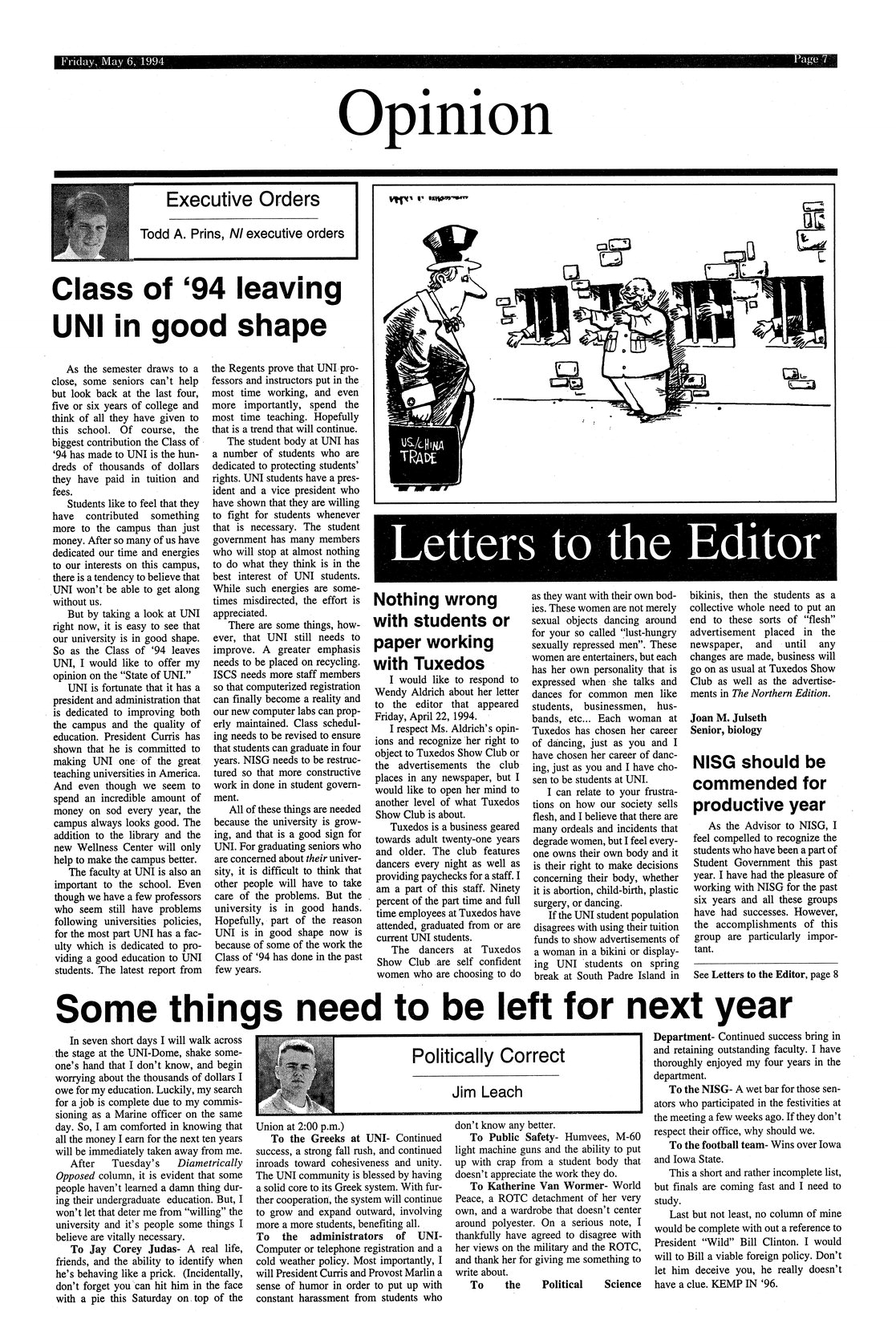 | Class of '94 leaving UNI in good shape | Outlines achievements and needs. |